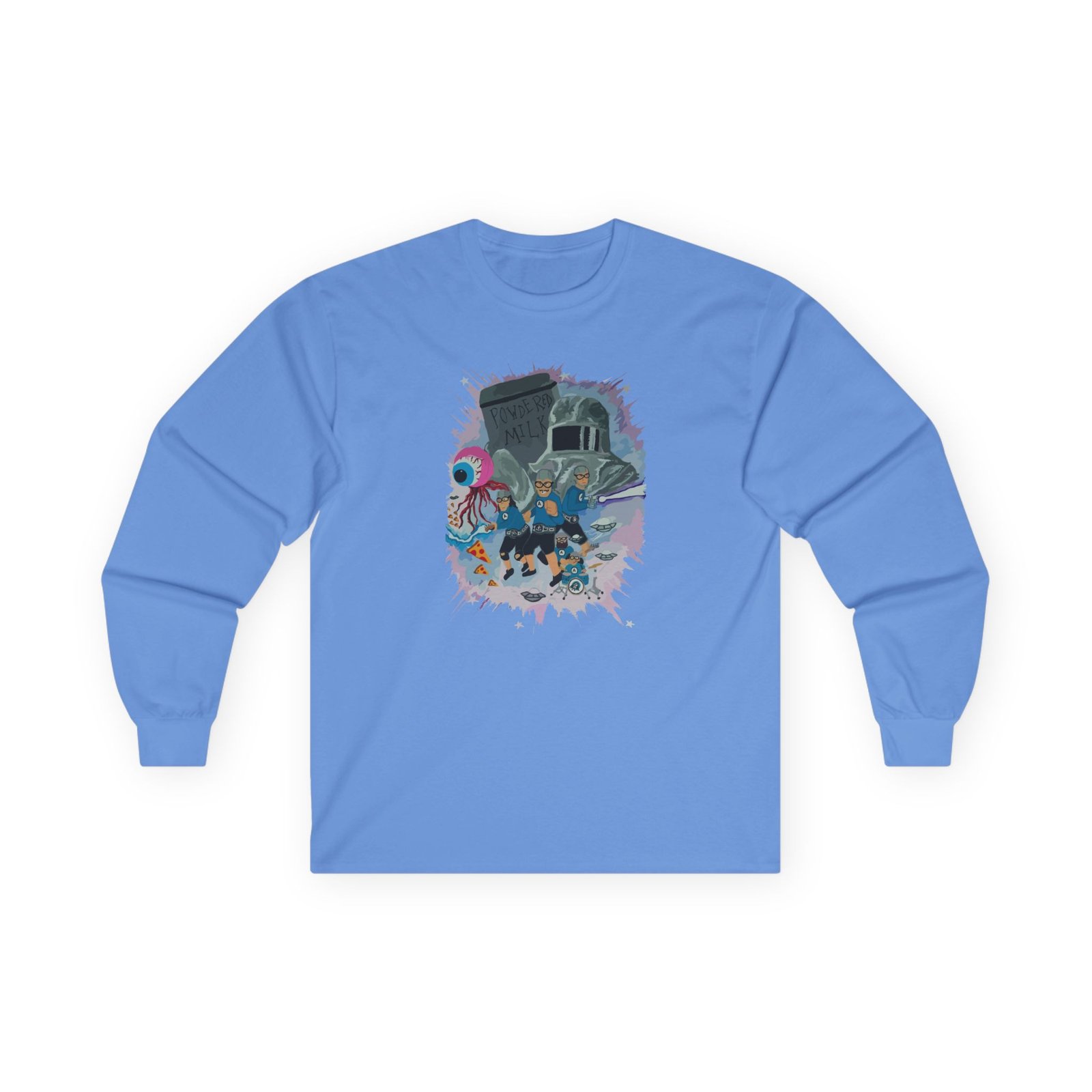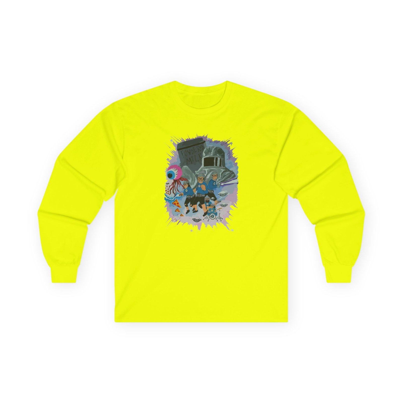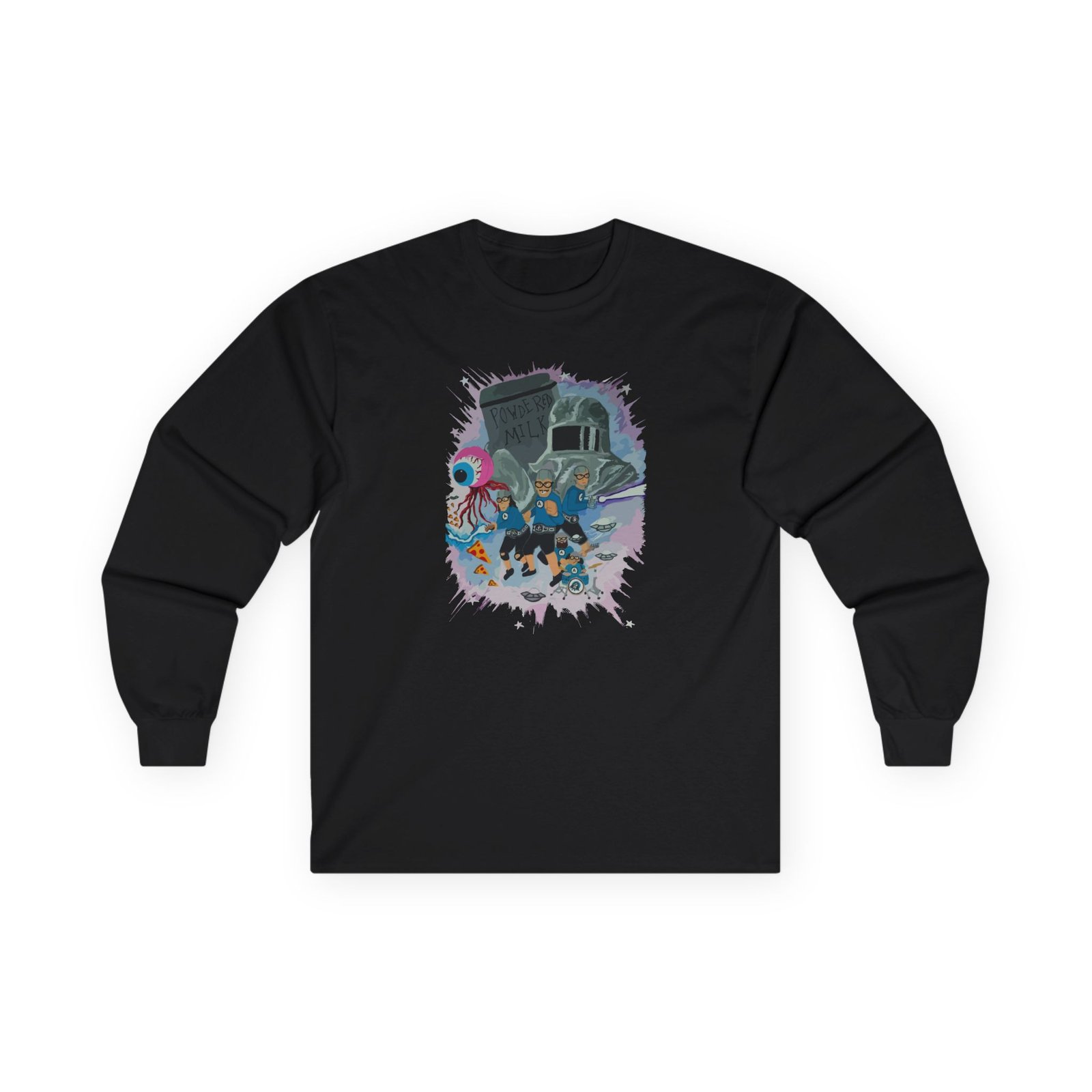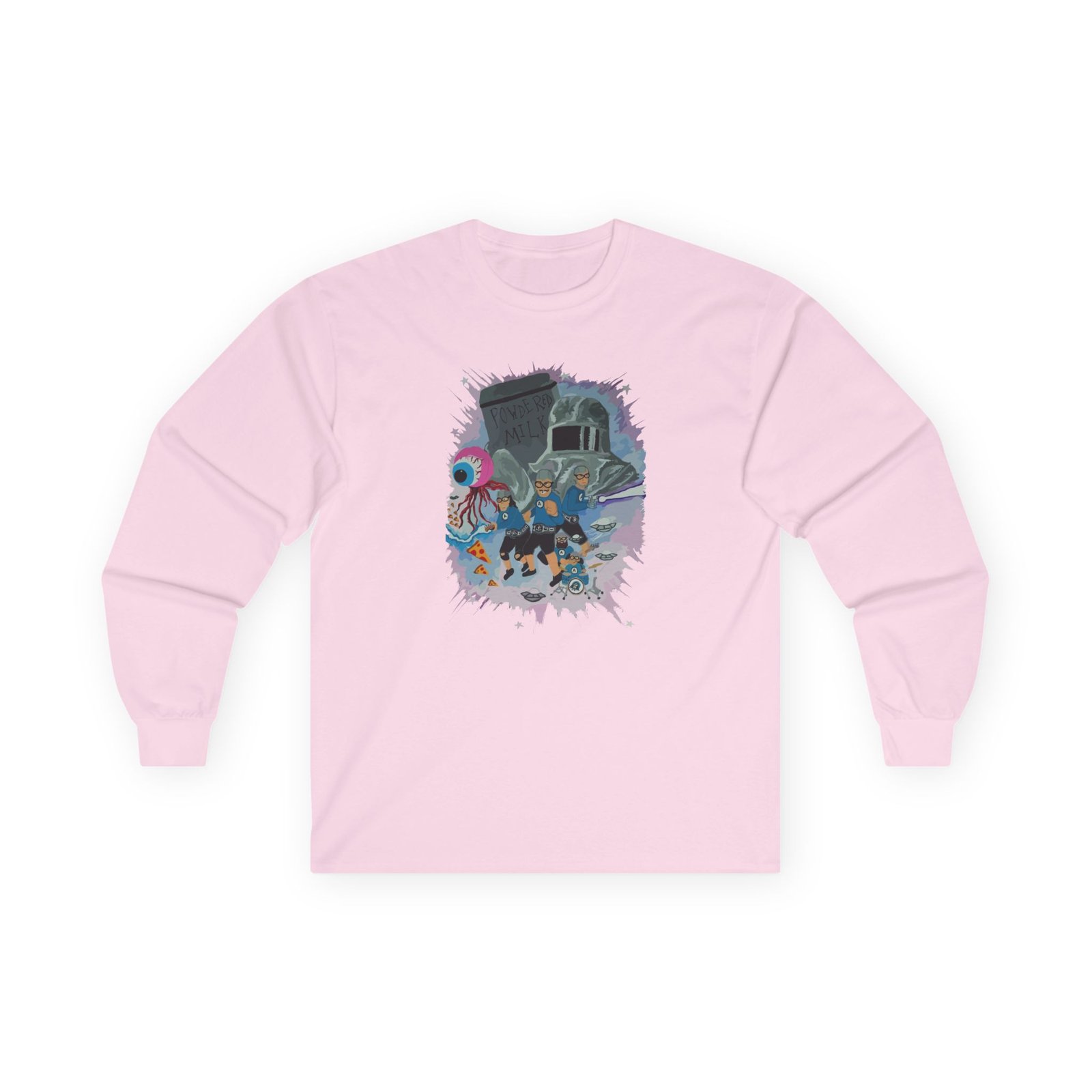 A bit more formal than a standard-issue t-shirt,The Aquabats Legendary! ultra cotton long sleeve tee is a clear comfort winner. The sleeves also act as a nice frame. There are no side seams. The shoulders are taped for improved durability. This makes for a good fitting around the shoulders and neck. The cotton used for these shirts is environmentally friendly.