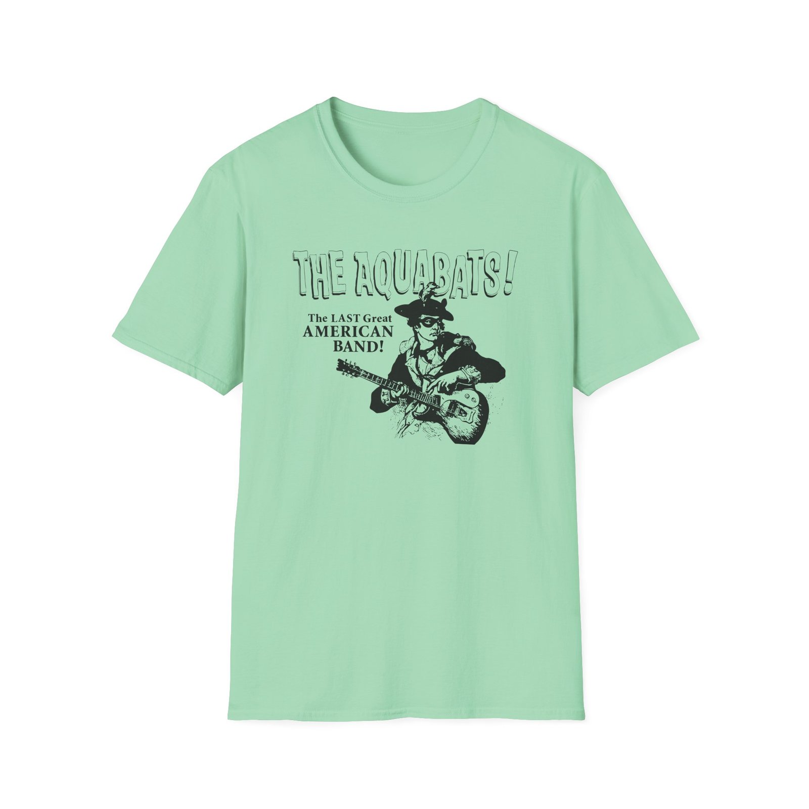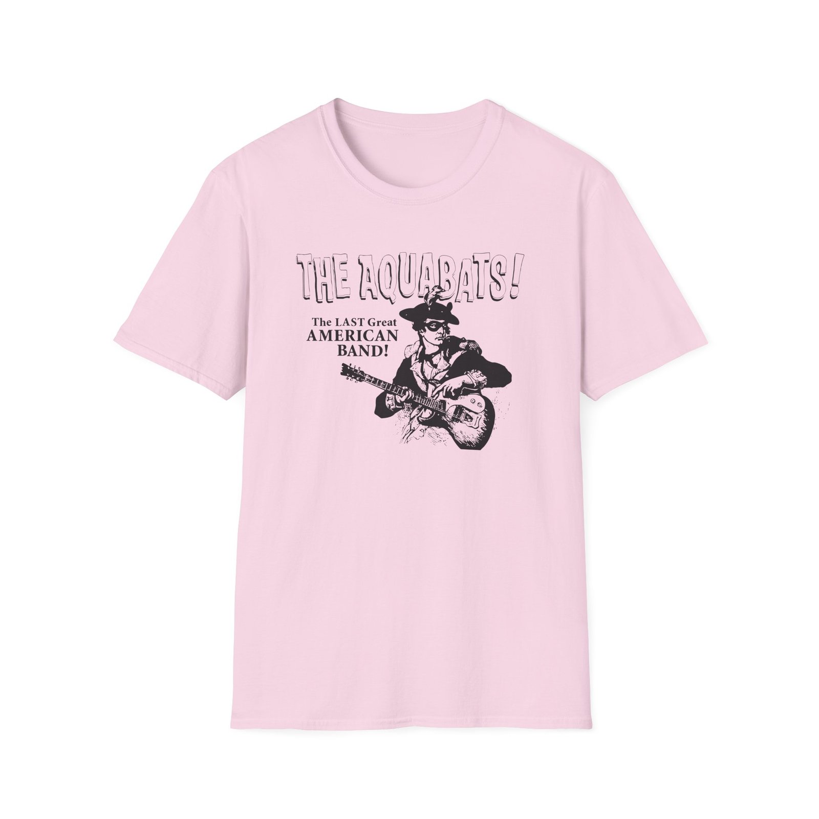The Aquabats the Last Great American Band! unisex soft-style t-shirt puts a new spin on casual comfort. Made from very soft materials, this tee is 100% cotton for solid colors. Heather colors and sports grey include polyester. The shoulders have twill tape for improved durability. There are no side seams. The collar is made with ribbed knitting to prevent curling damage.