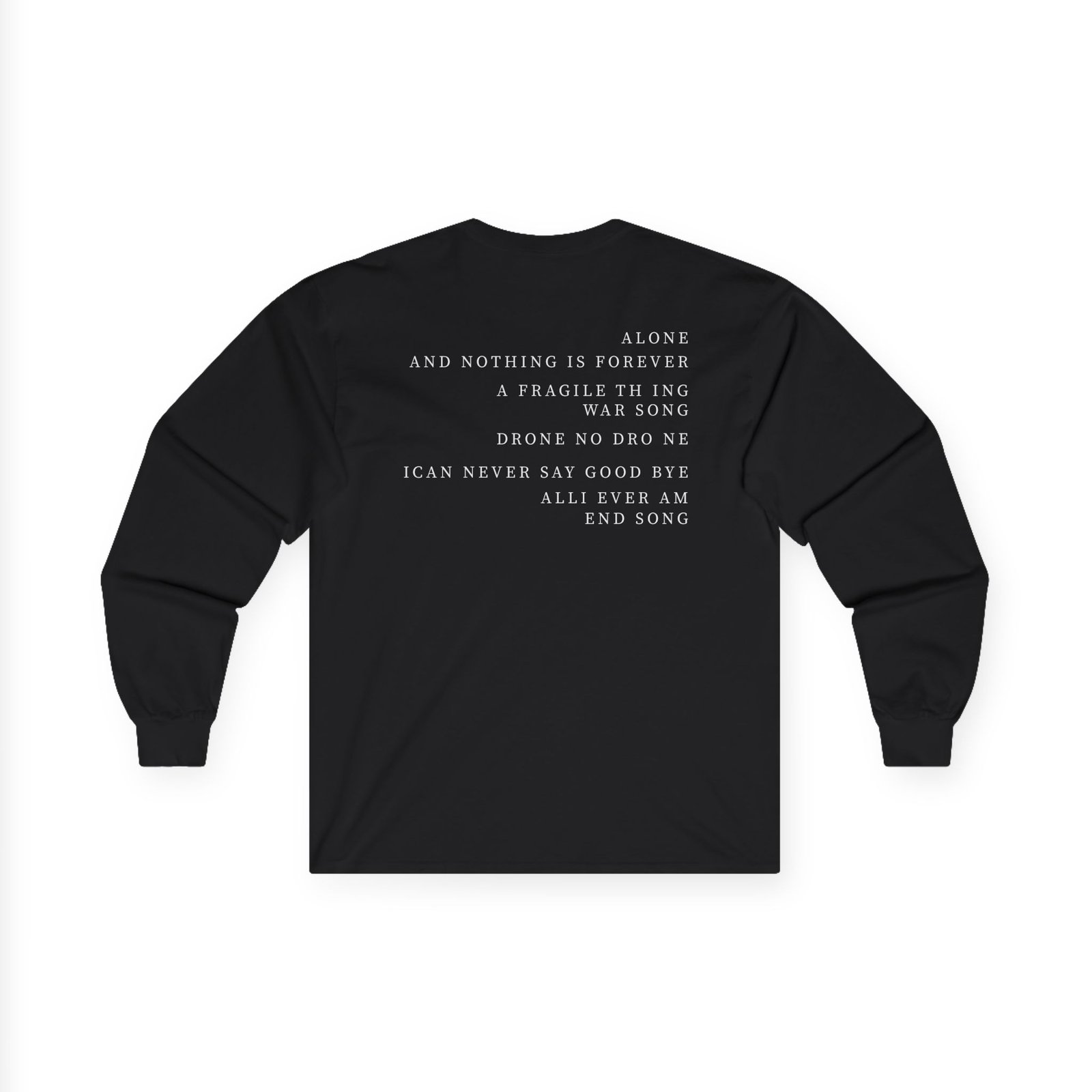 A bit more formal than a standard-issue t-shirt, The Cure Songs of a Lost World ultra cotton long sleeve tee is a clear comfort winner. The sleeves also act as a nice frame. There are no side seams. The shoulders are taped for improved durability. This makes for a good fitting around the shoulders and neck. The cotton used for these shirts is environmentally friendly.