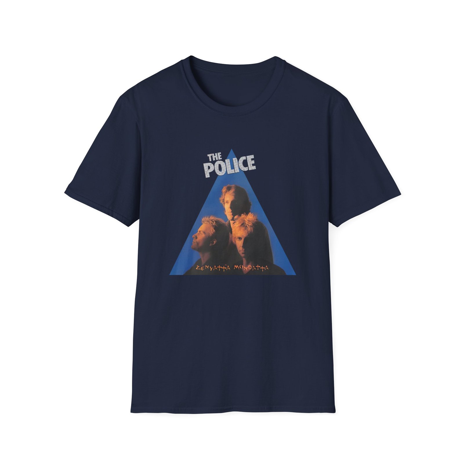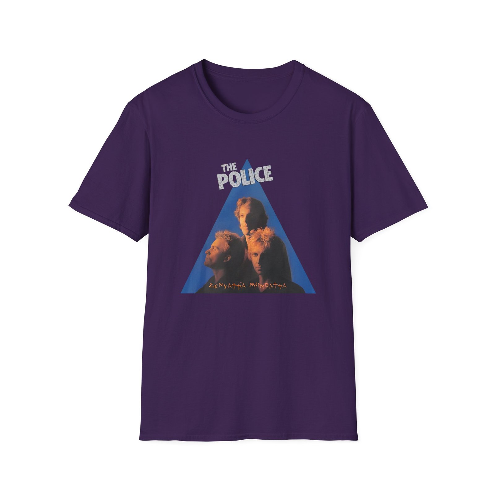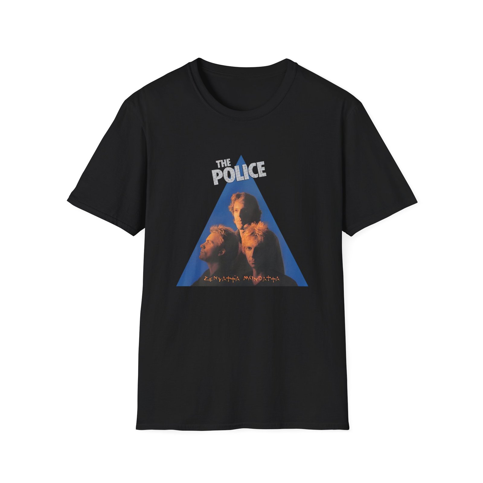 The The Police Zenyatta Mondatta unisex soft-style t-shirt puts a new spin on casual comfort. Made from very soft materials, this tee is 100% cotton for solid colors. Heather colors and sports grey include polyester. The shoulders have twill tape for improved durability. There are no side seams. The collar is made with ribbed knitting to prevent curling damage.
