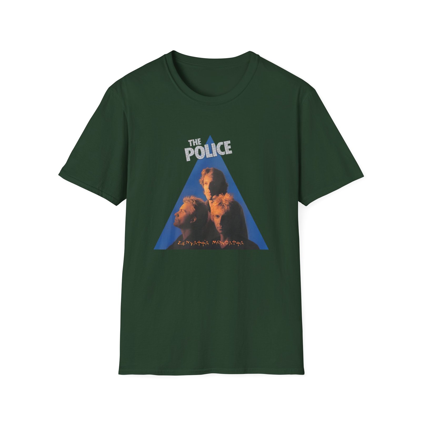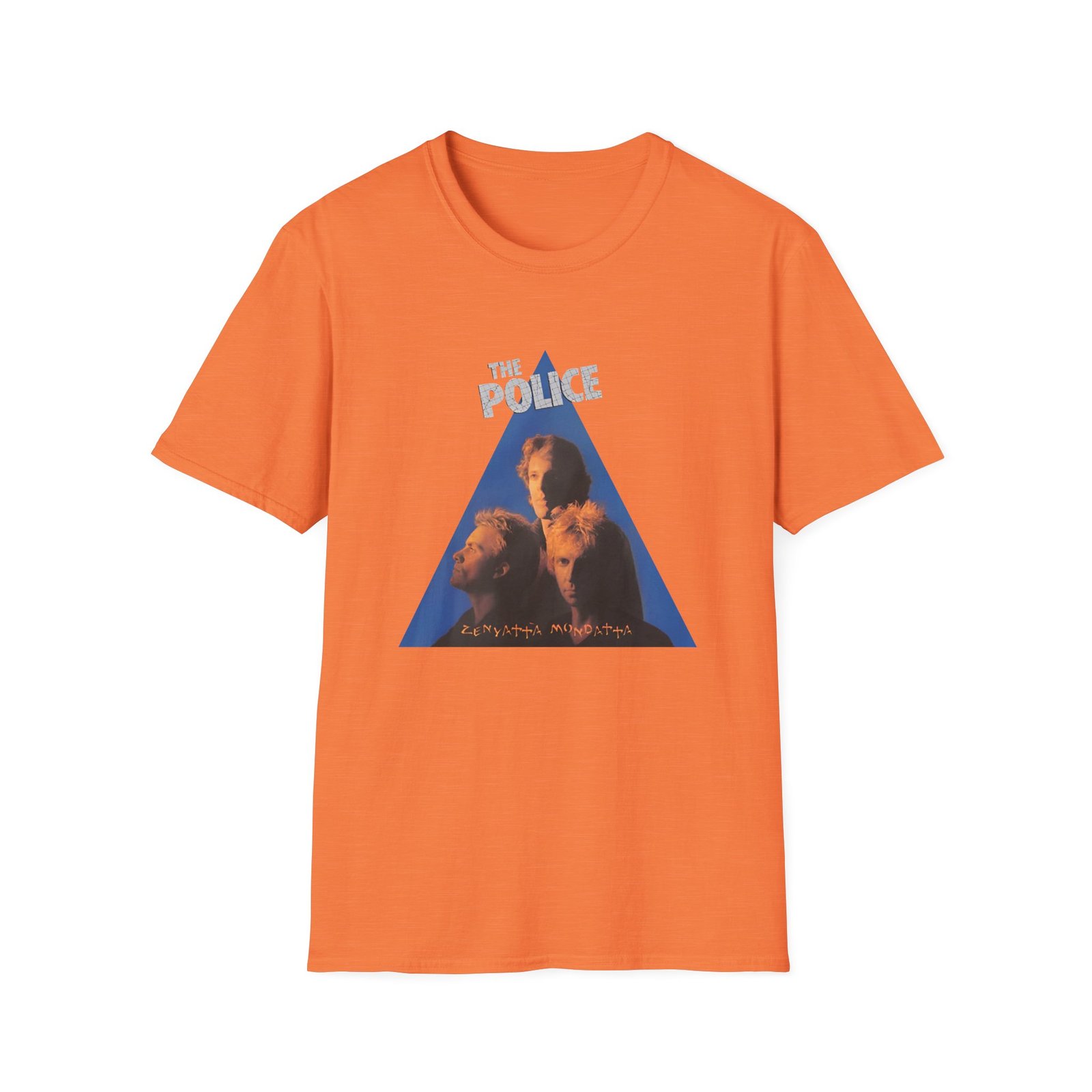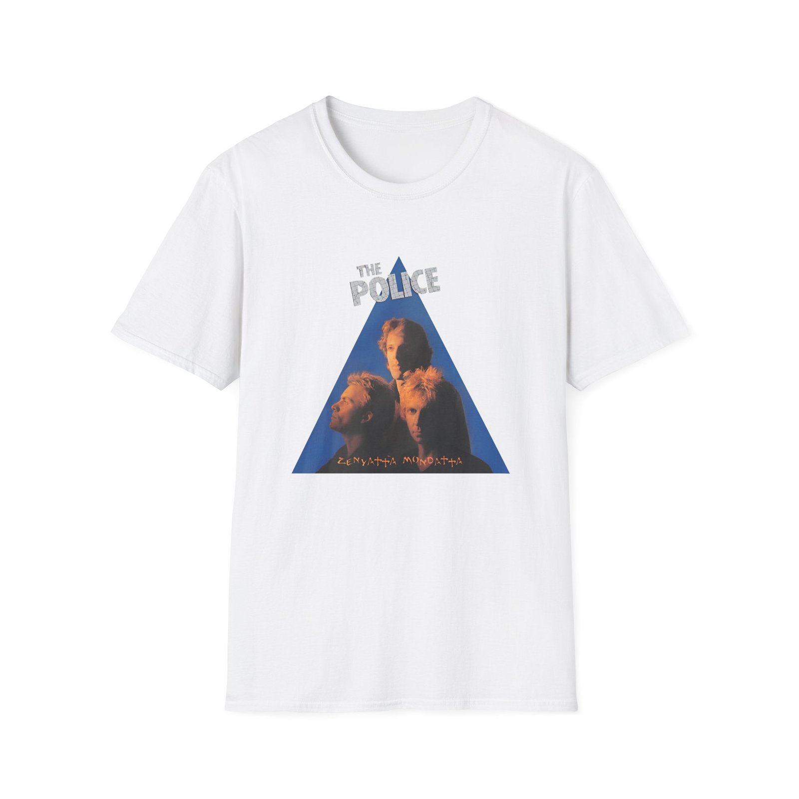 The The Police Zenyatta Mondatta unisex soft-style t-shirt puts a new spin on casual comfort. Made from very soft materials, this tee is 100% cotton for solid colors. Heather colors and sports grey include polyester. The shoulders have twill tape for improved durability. There are no side seams. The collar is made with ribbed knitting to prevent curling damage.