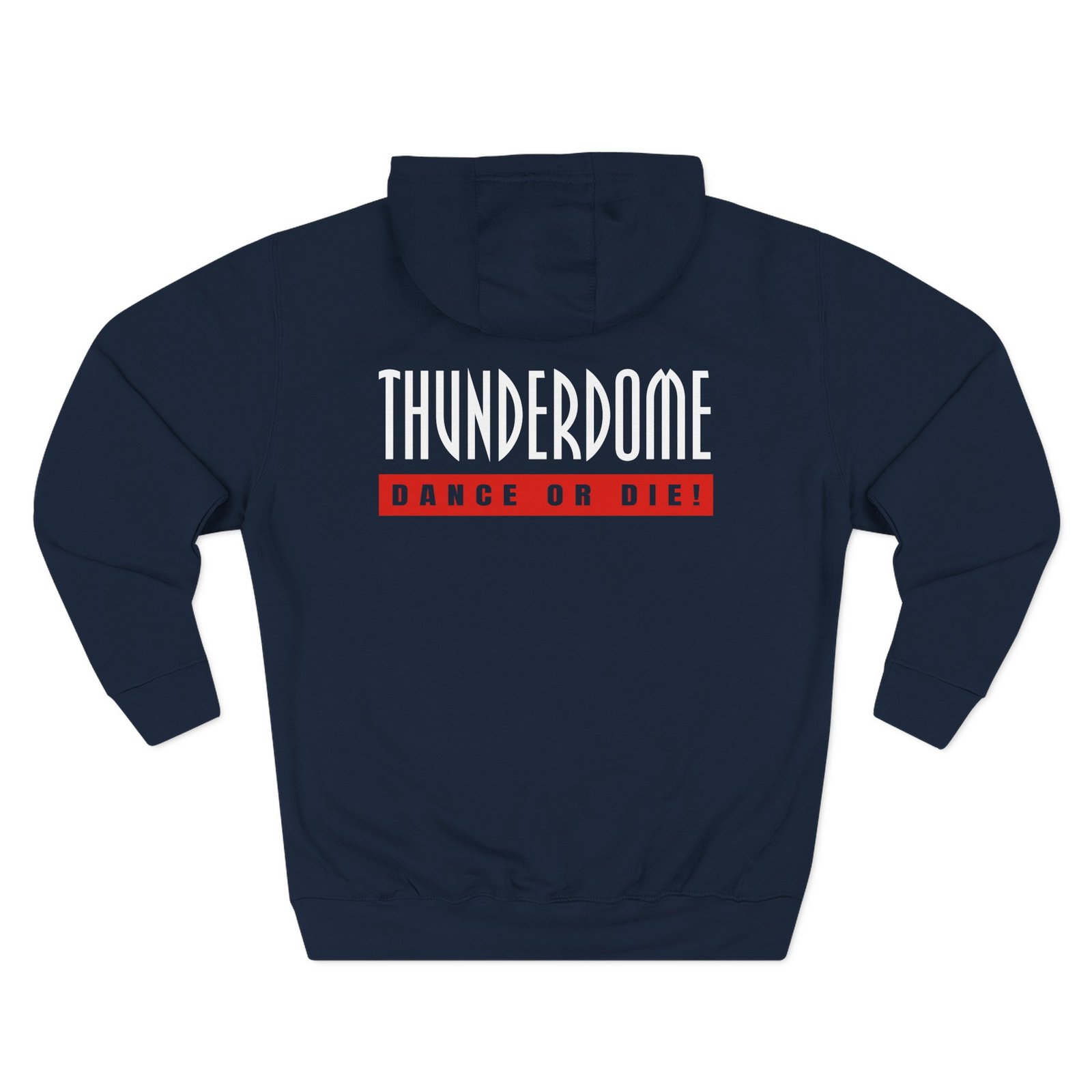 Beat the cold with this Thunderdome Dance Or Die premium pullover hoodie that’s just the right layer of warm and cozy. Made with three-panel fleece lining, this pullover is double stitched for durability and roomy. Pick one in your favorite color to match your style.