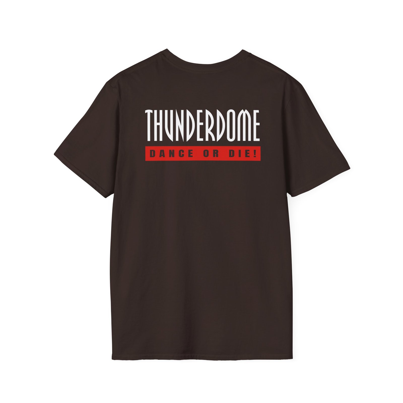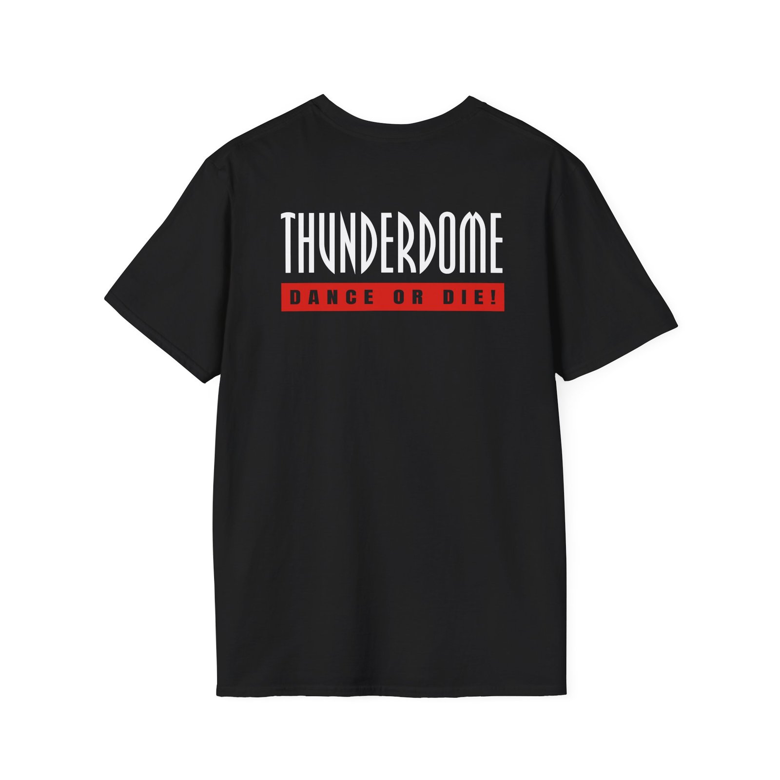 The Thunderdome Dance Or Die unisex soft-style t-shirt puts a new spin on casual comfort. Made from very soft materials, this tee is 100% cotton for solid colors. Heather colors and sports grey include polyester. The shoulders have twill tape for improved durability. There are no side seams. The collar is made with ribbed knitting to prevent curling damage.