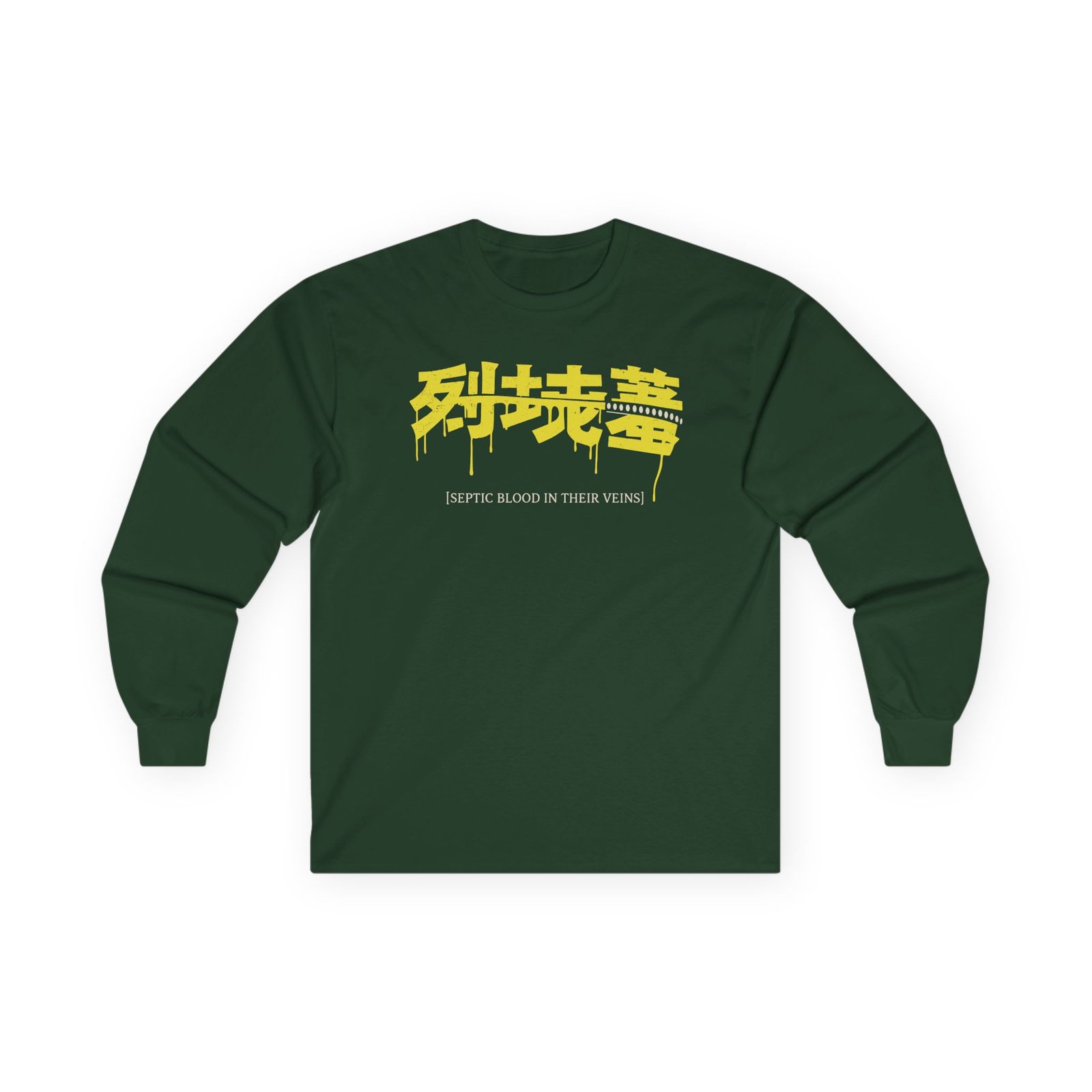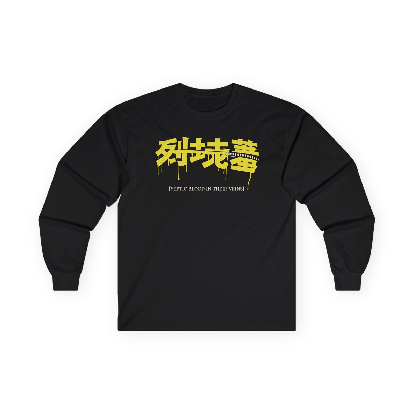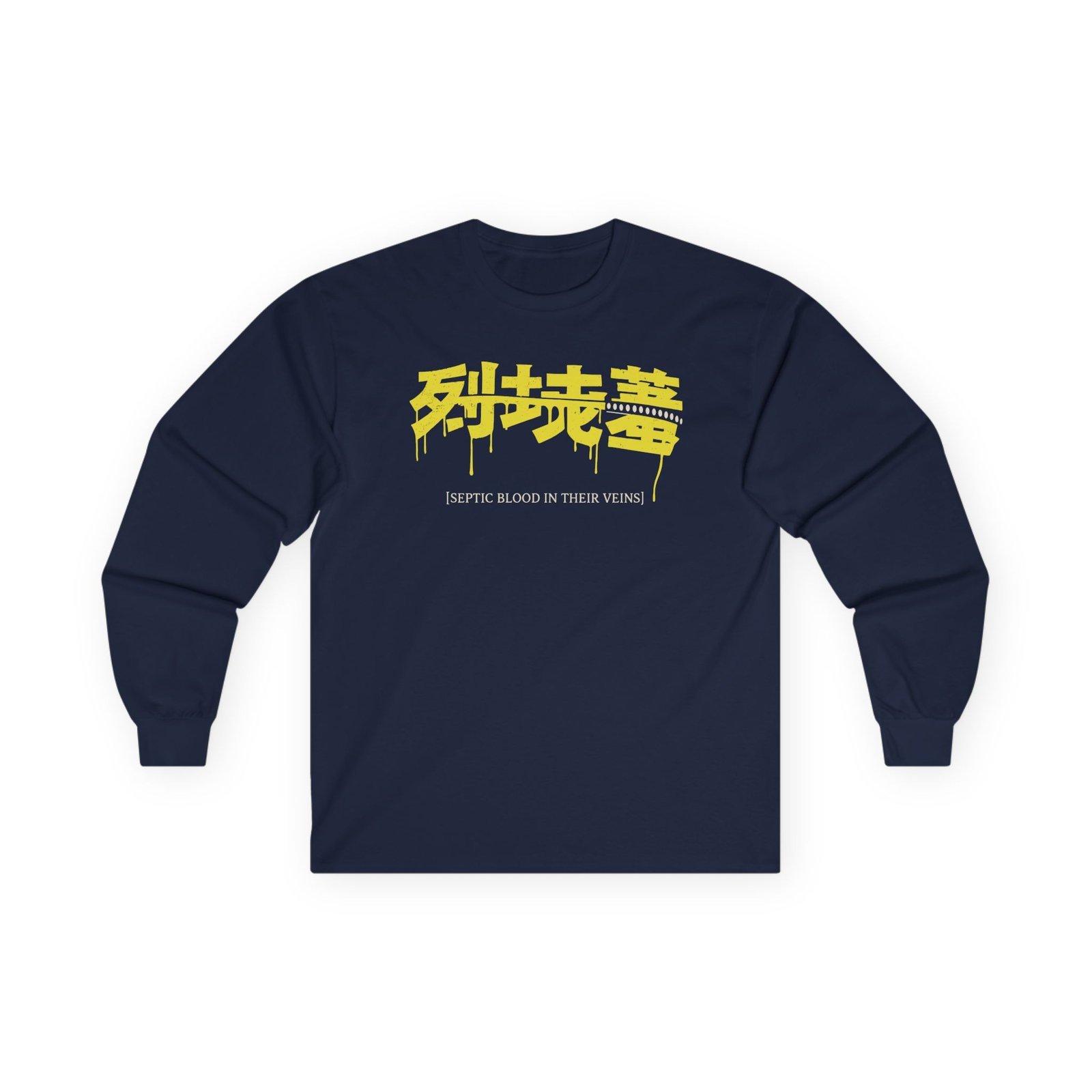 A bit more formal than a standard-issue t-shirt, To the Grave Septic ultra cotton long sleeve tee is a clear comfort winner. The sleeves also act as a nice frame. There are no side seams. The shoulders are taped for improved durability. This makes for a good fitting around the shoulders and neck. The cotton used for these shirts is environmentally friendly.