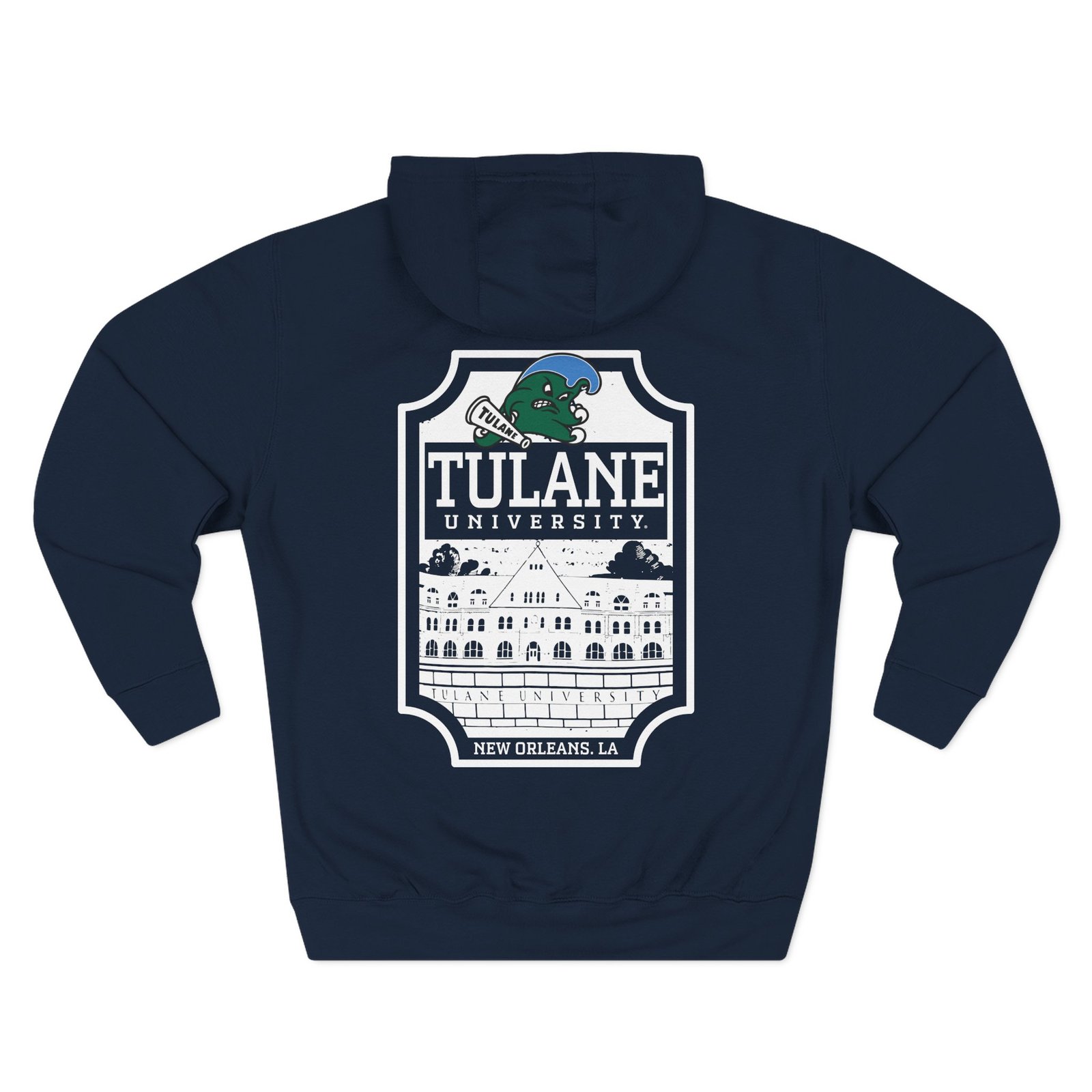 Beat the cold with this Tulane Green Wave Logo premium pullover hoodie that’s just the right layer of warm and cozy. Made with three-panel fleece lining, this pullover is double stitched for durability and roomy. Pick one in your favorite color to match your style.