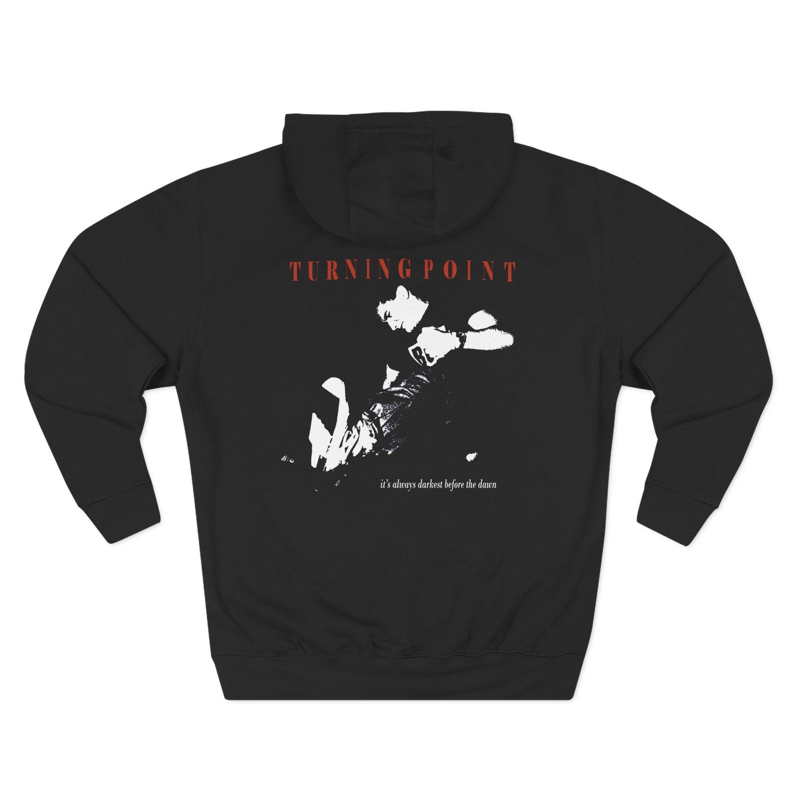 Beat the cold with this Turning Point Always Darkest premium pullover hoodie that’s just the right layer of warm and cozy. Made with three-panel fleece lining, this pullover is double stitched for durability and roomy. Pick one in your favorite color to match your style.