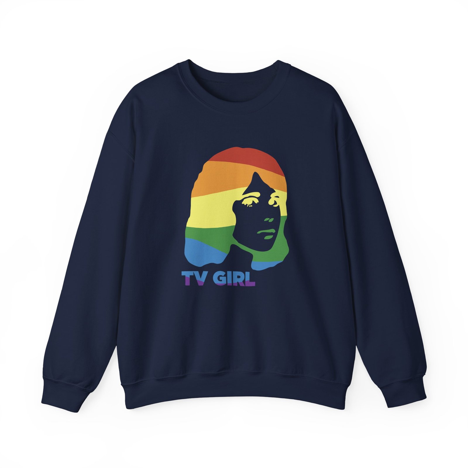 Ideal for any situation, a Tv Girl unisex heavy blend crewneck sweatshirt is pure comfort. These garments are made from polyester and cotton. This combination helps designs come out looking fresh and beautiful. The collar is ribbed knit, so it retains its shape even after washing. There are no itchy side seams on these sweaters.