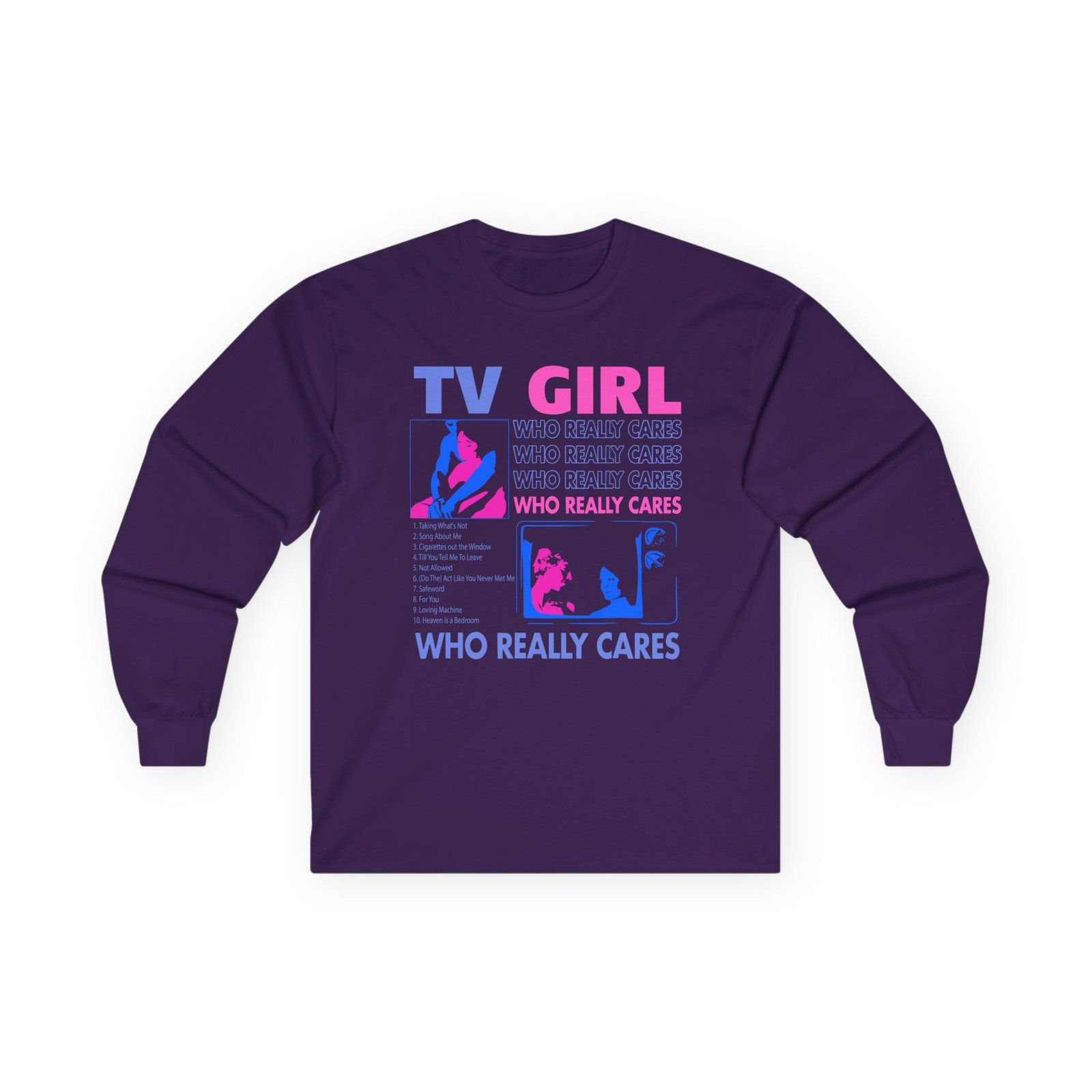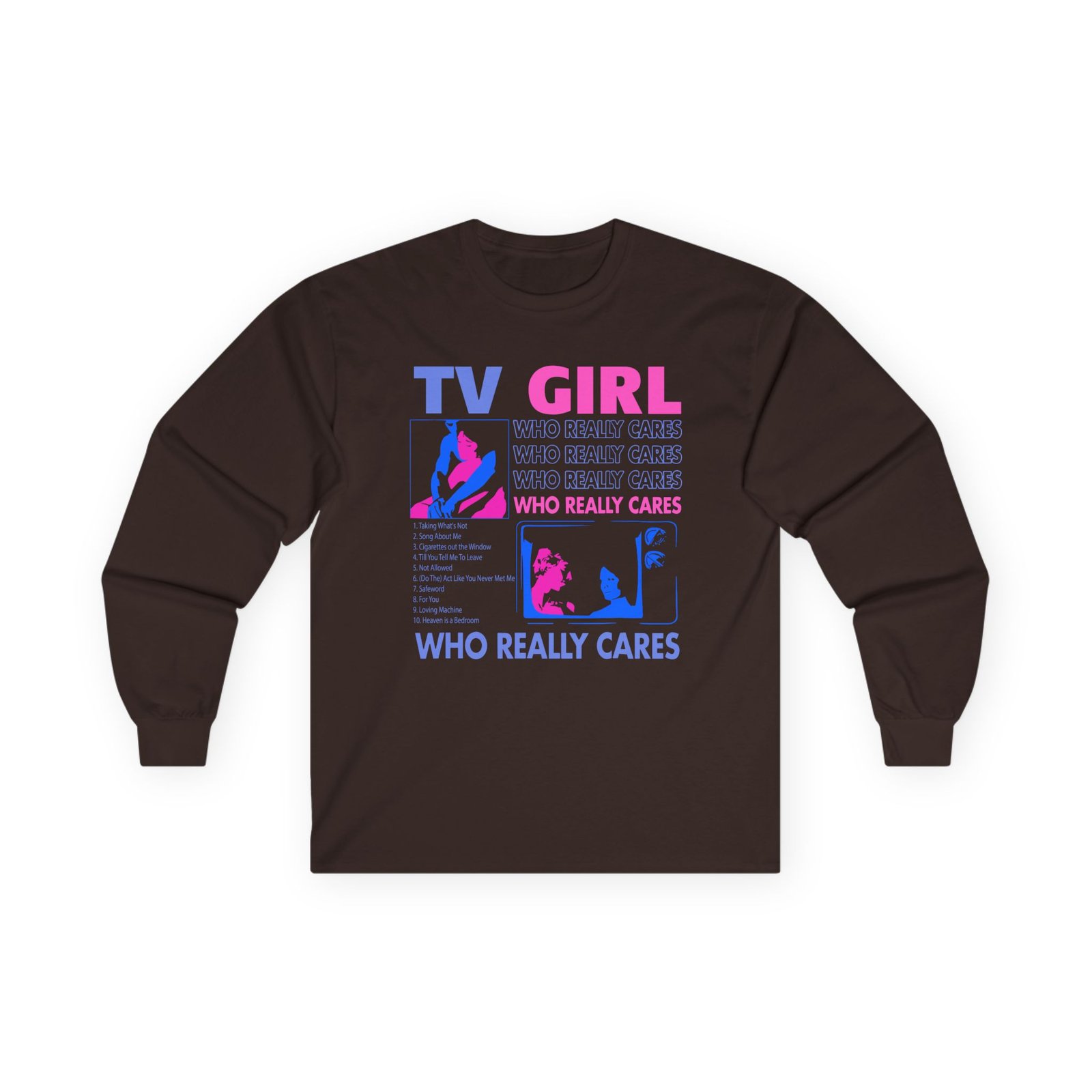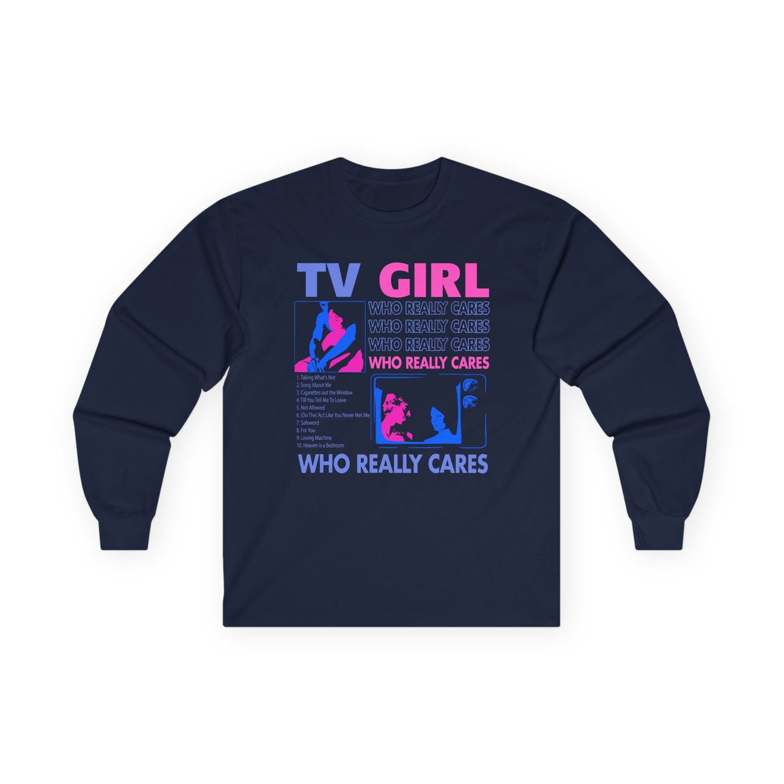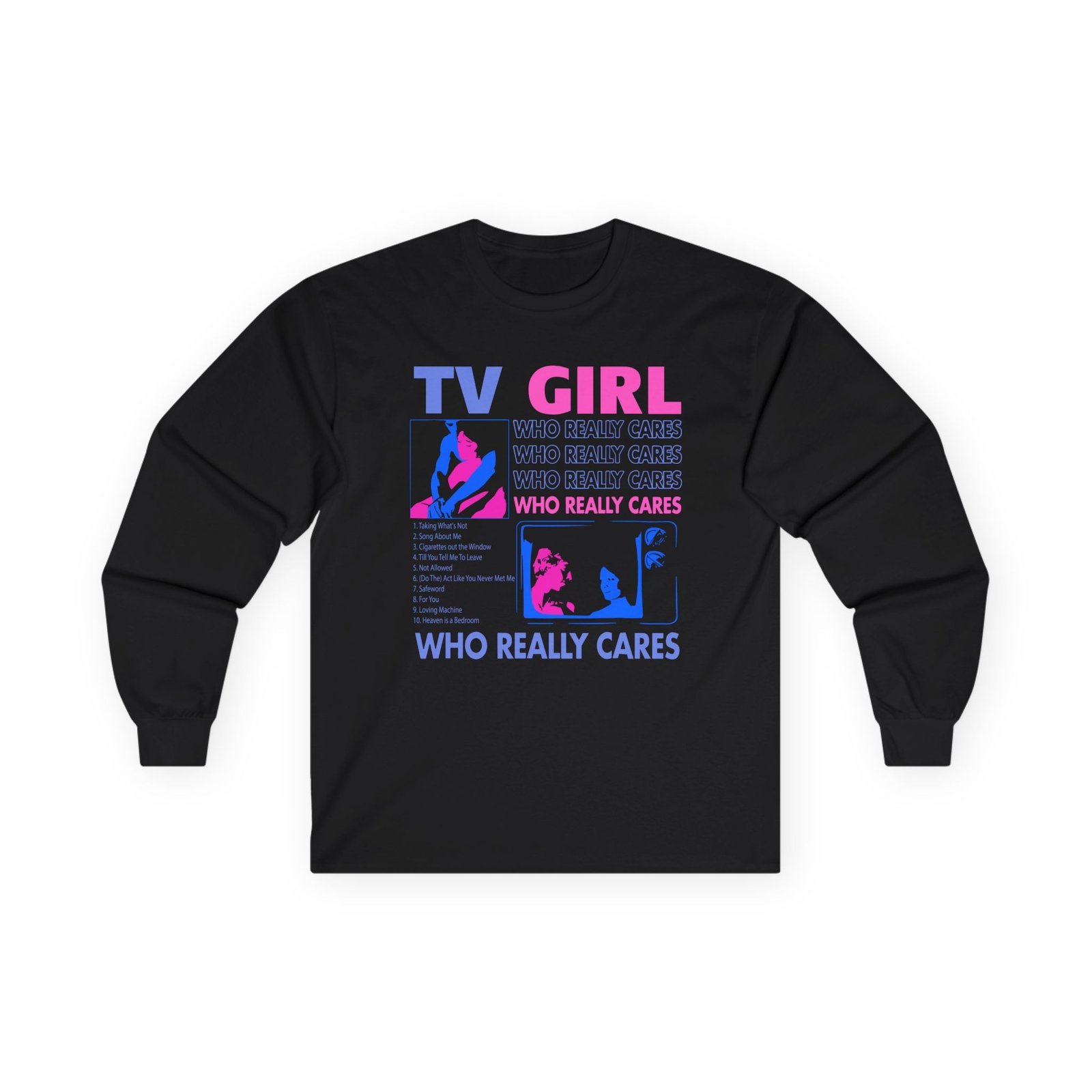 A bit more formal than a standard-issue t-shirt, the Tv Girl ultra cotton long sleeve tee is a clear comfort winner. The sleeves also act as a nice frame. There are no side seams. The shoulders are taped for improved durability. This makes for a good fitting around the shoulders and neck. The cotton used for these shirts is environmentally friendly.