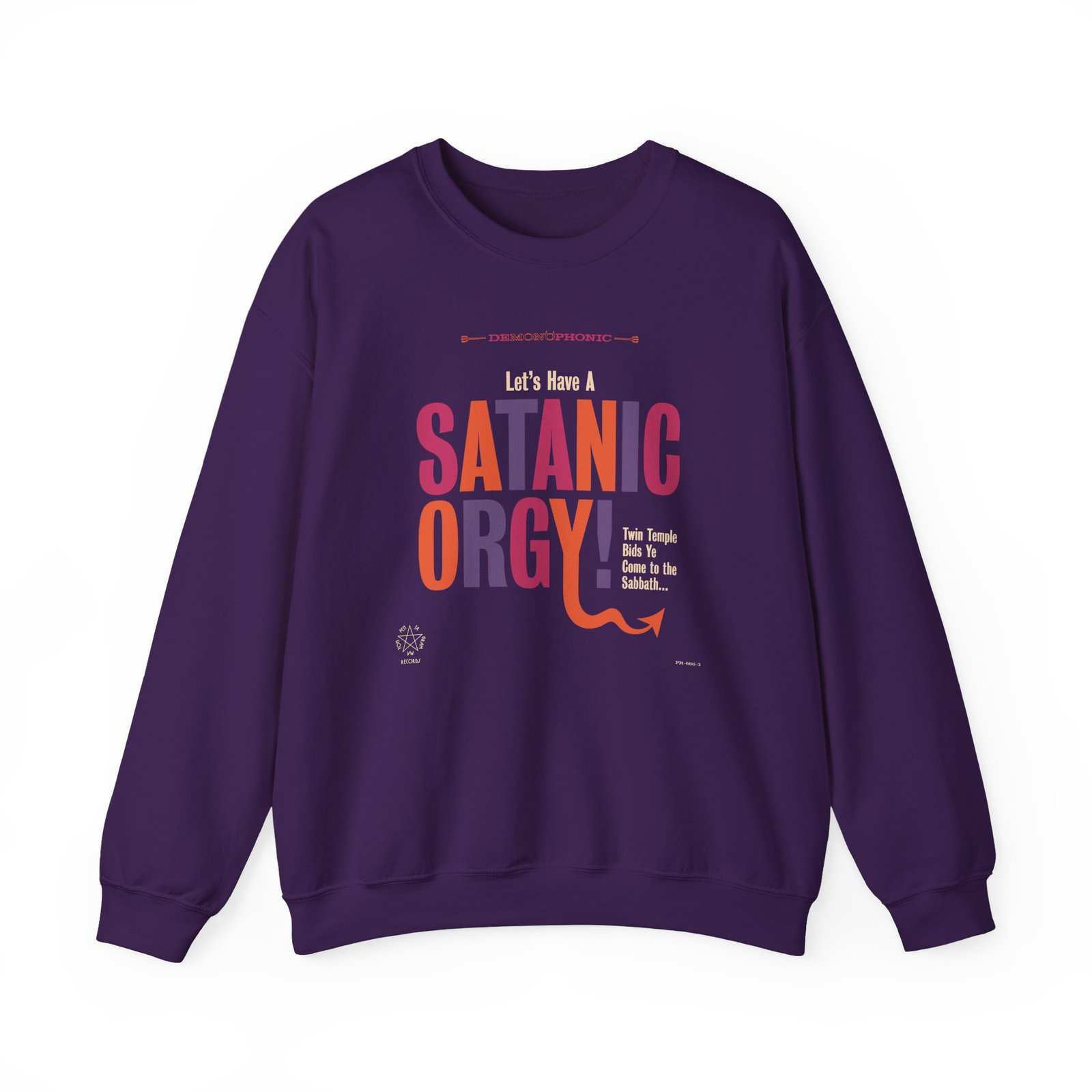 Ideal for any situation, a Twin Temple Let's Have A Satanic Orgy unisex heavy blend crewneck sweatshirt is pure comfort. These garments are made from polyester and cotton. This combination helps designs come out looking fresh and beautiful. The collar is ribbed knit, so it retains its shape even after washing. There are no itchy side seams on these sweaters.