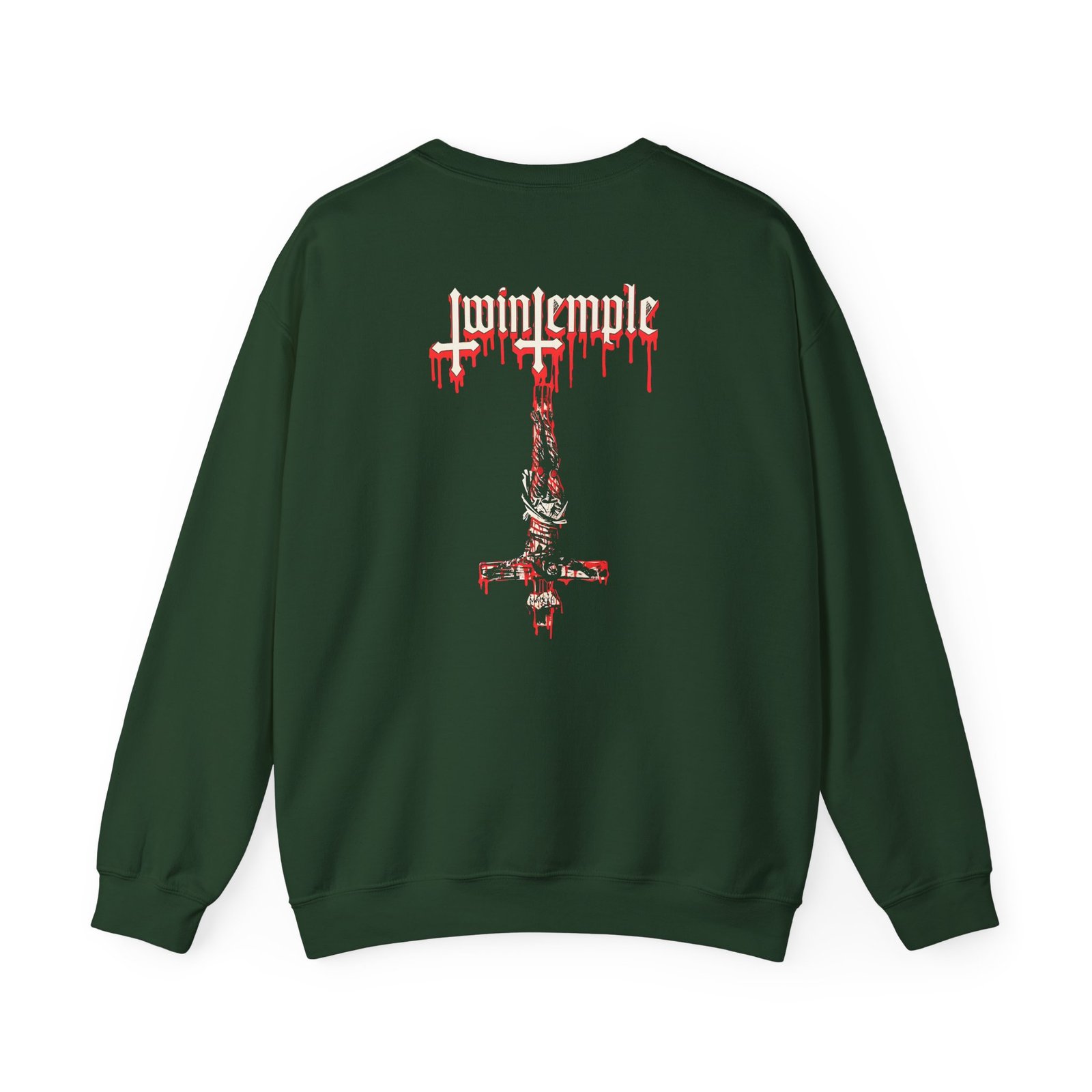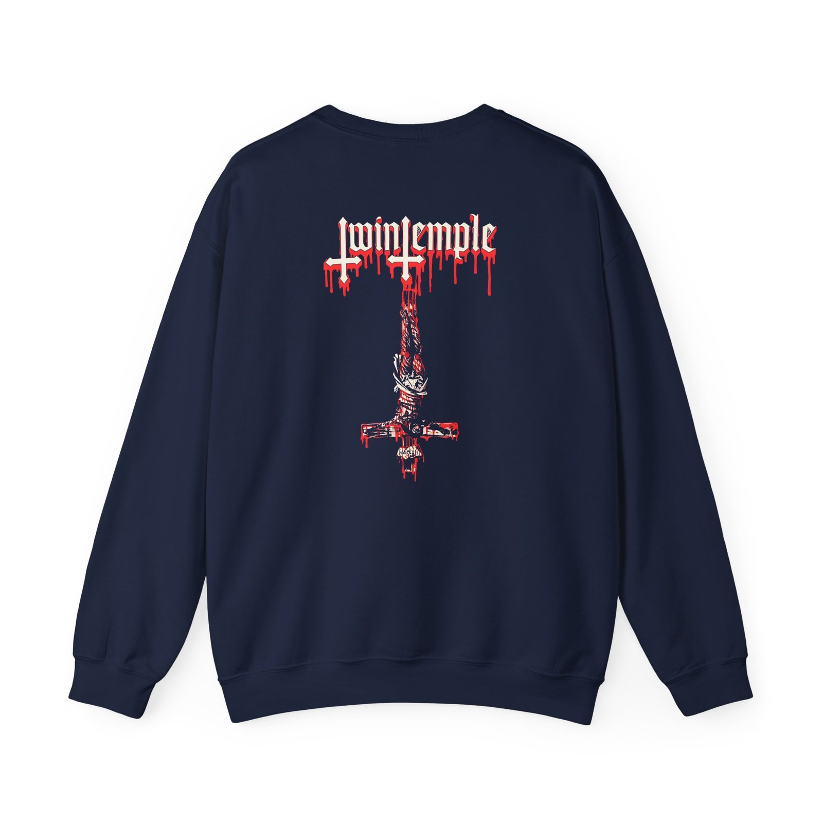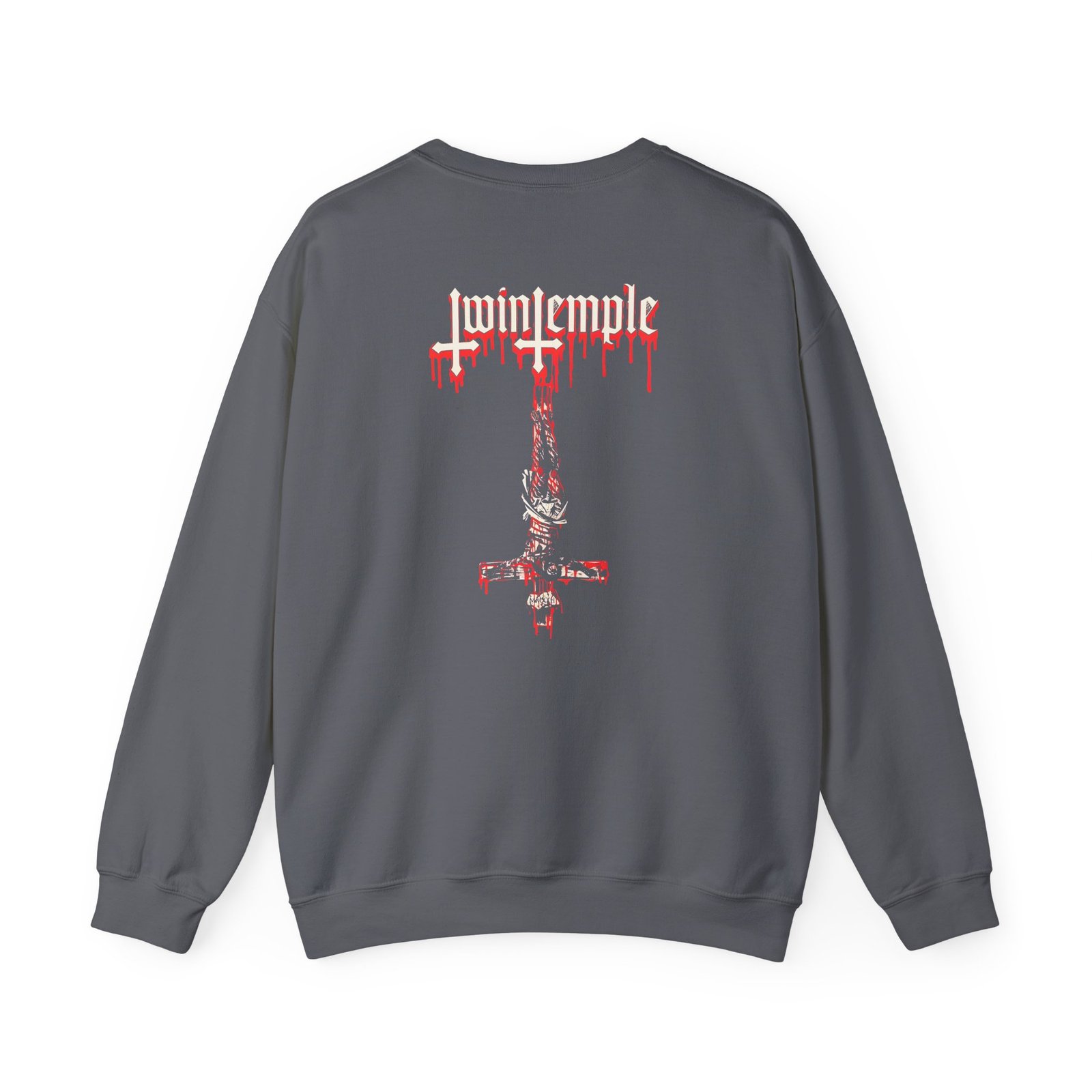 Ideal for any situation, a Twin Temple Luciferi Excelsi unisex heavy blend crewneck sweatshirt is pure comfort. These garments are made from polyester and cotton. This combination helps designs come out looking fresh and beautiful. The collar is ribbed knit, so it retains its shape even after washing. There are no itchy side seams on these sweaters.