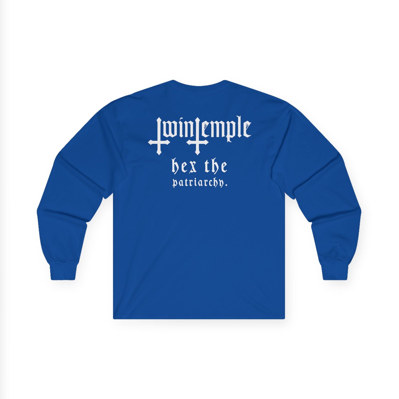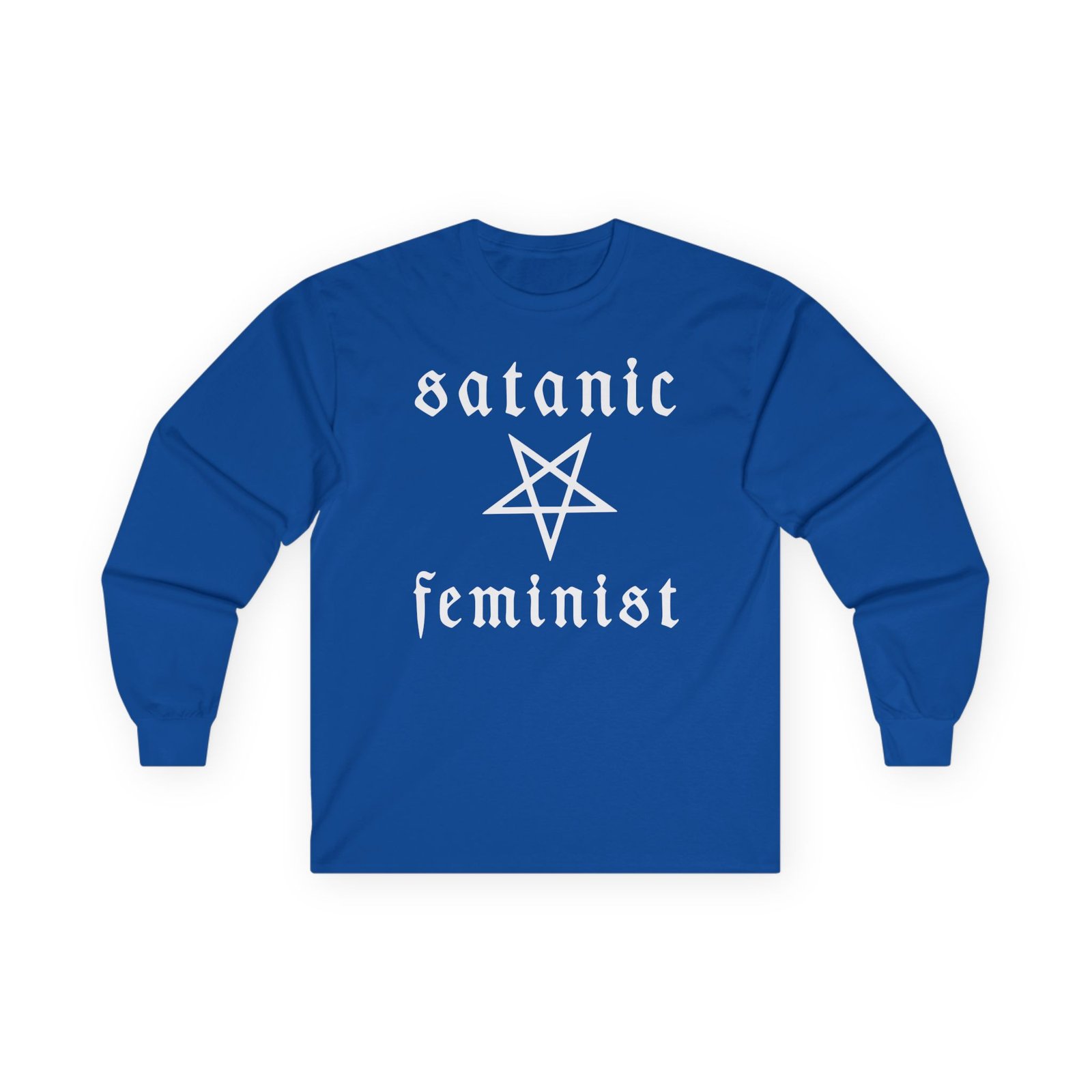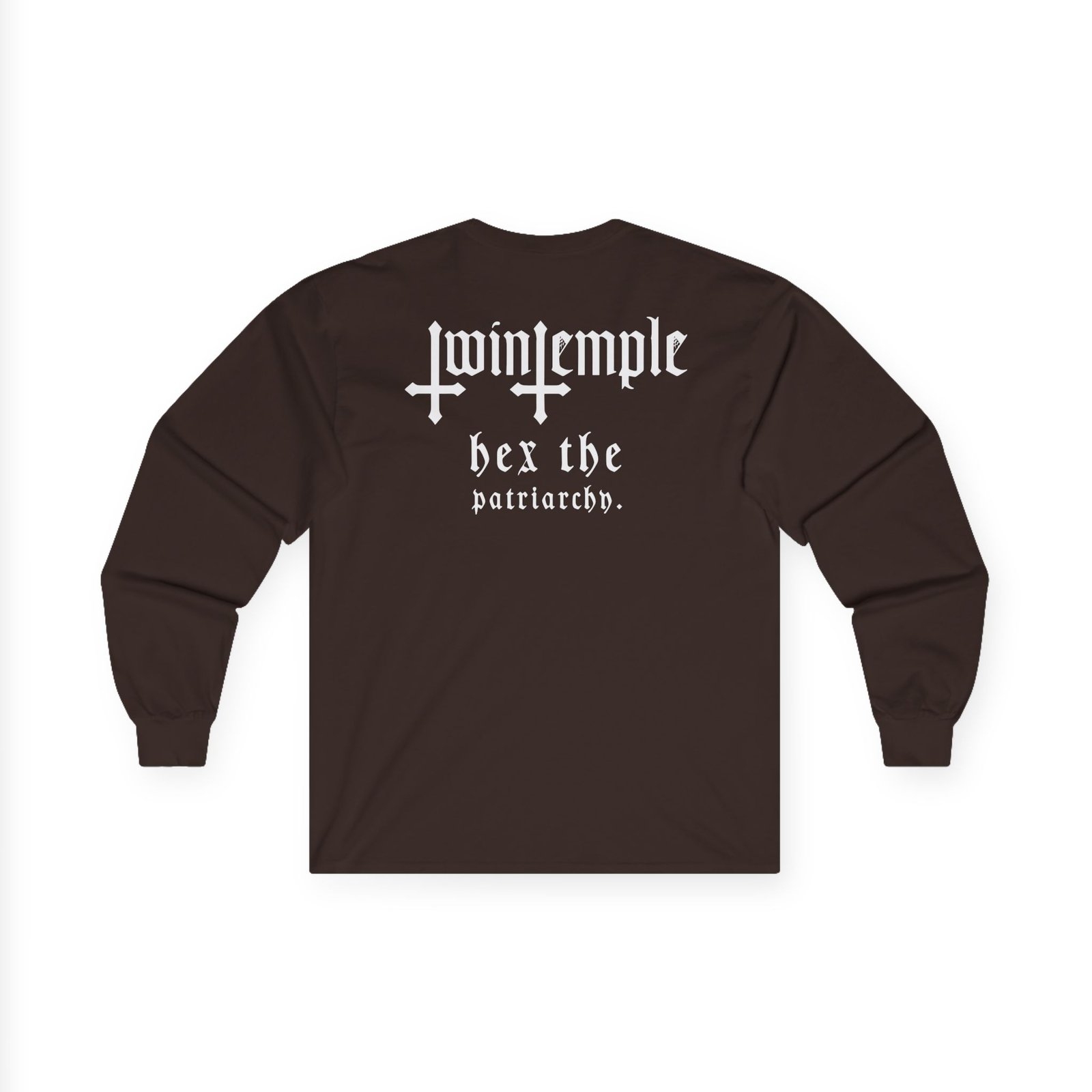 A bit more formal than a standard-issue t-shirt, the Twin Temple Satanic Feminist ultra cotton long sleeve tee is a clear comfort winner. The sleeves also act as a nice frame. There are no side seams. The shoulders are taped for improved durability. This makes for a good fitting around the shoulders and neck. The cotton used for these shirts is environmentally friendly.