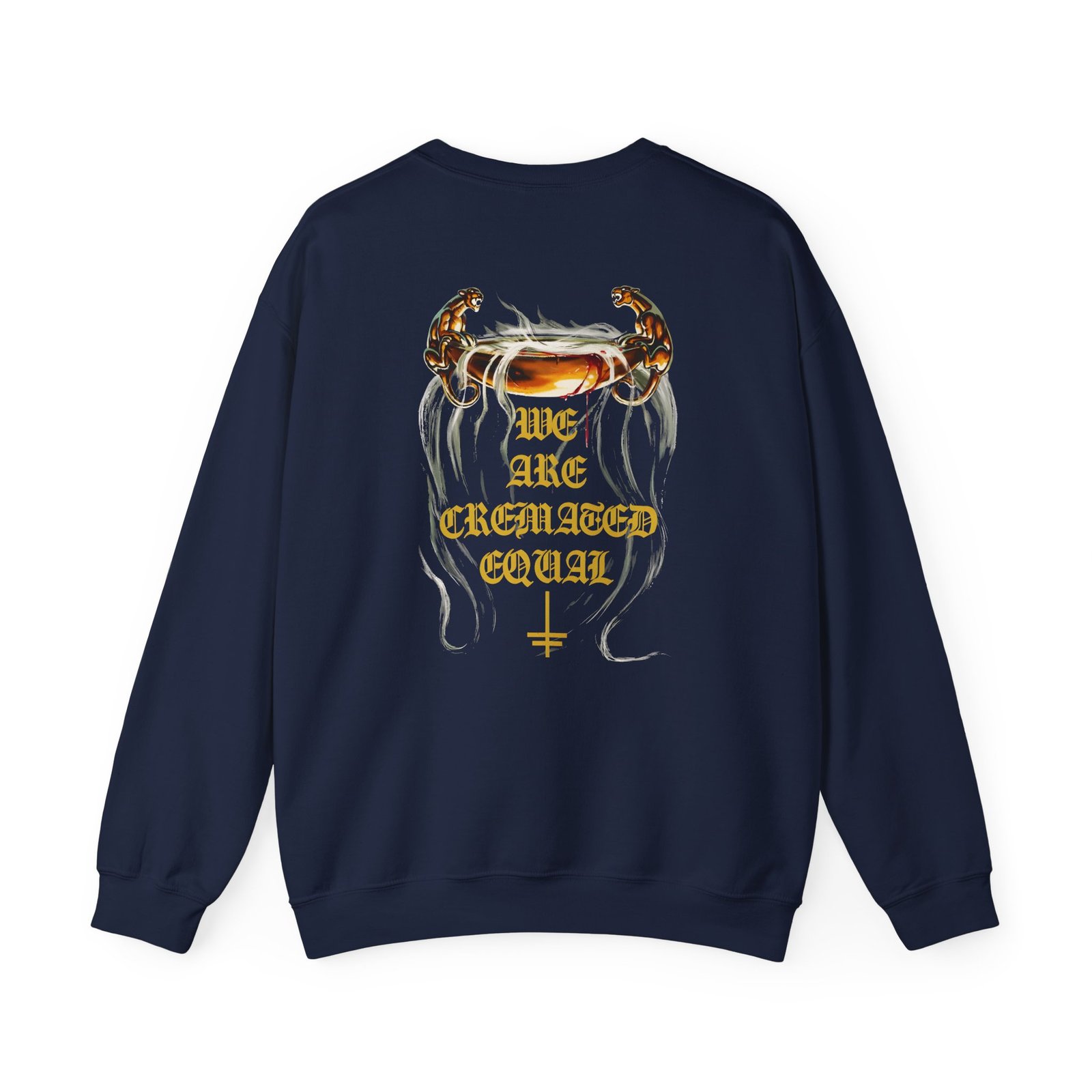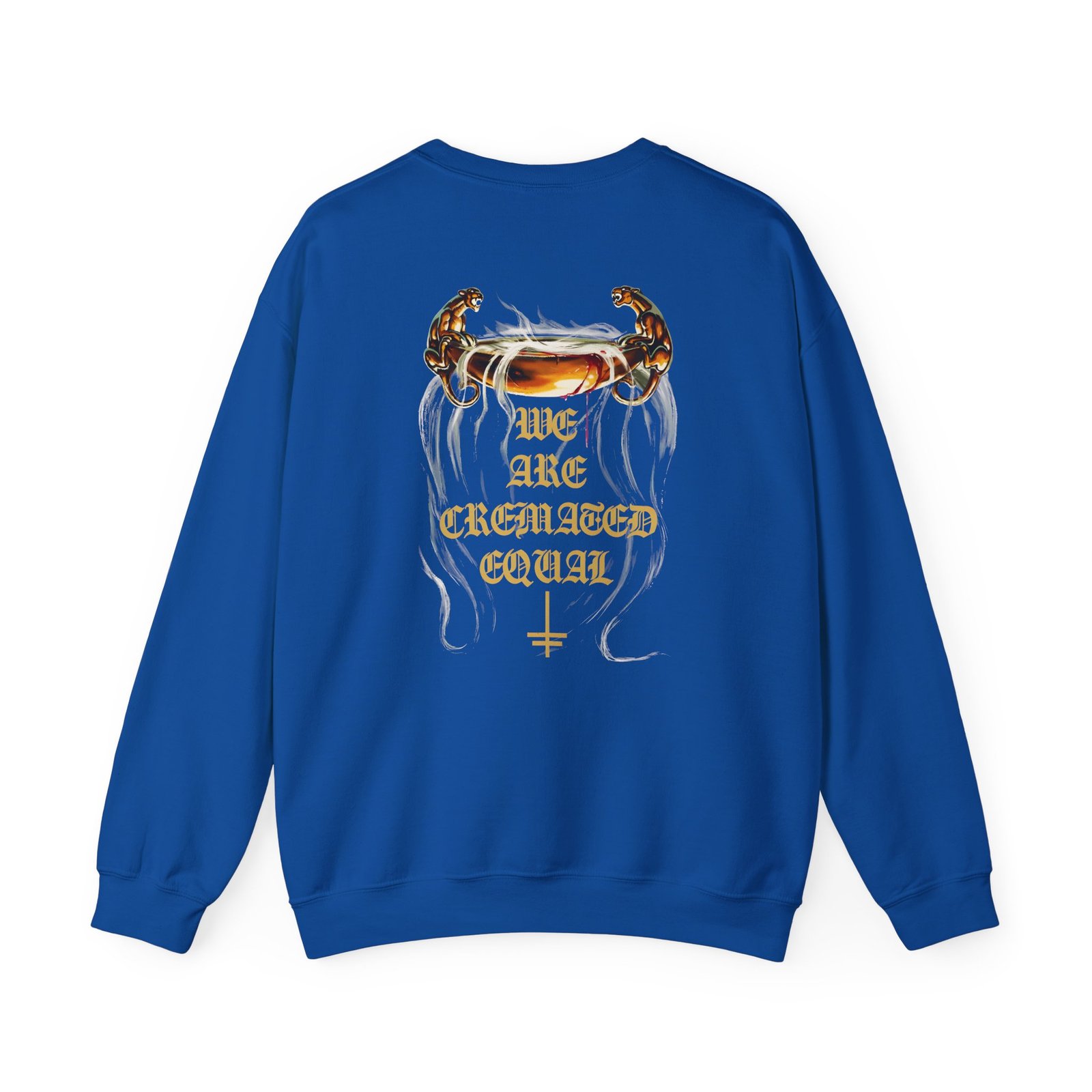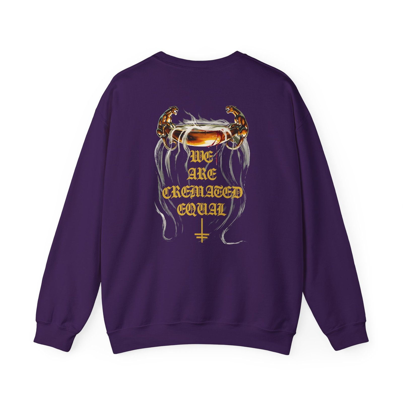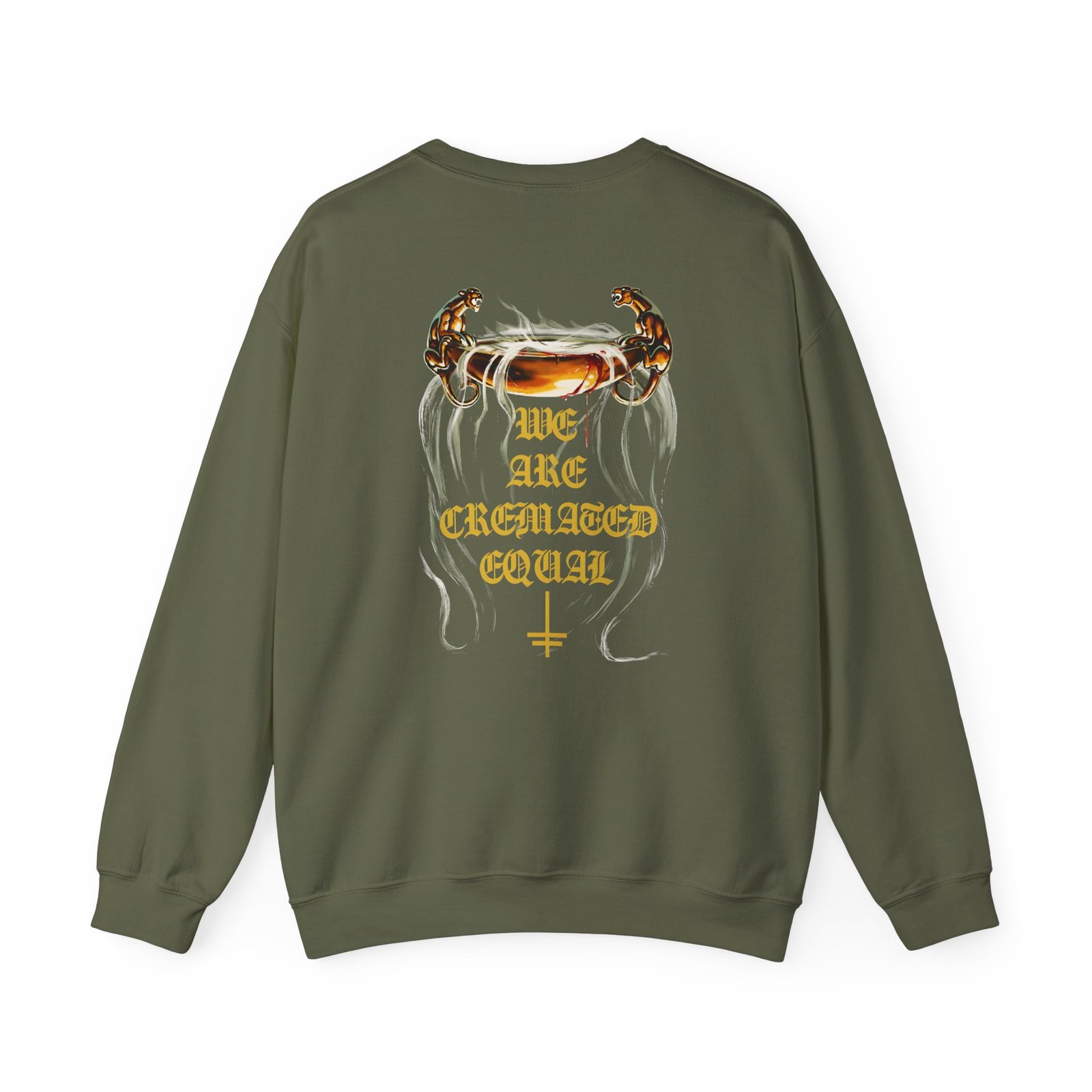 Ideal for any situation, a Twitching Tongues Cremated Equal unisex heavy blend crewneck sweatshirt is pure comfort. These garments are made from polyester and cotton. This combination helps designs come out looking fresh and beautiful. The collar is ribbed knit, so it retains its shape even after washing. There are no itchy side seams on these sweaters.