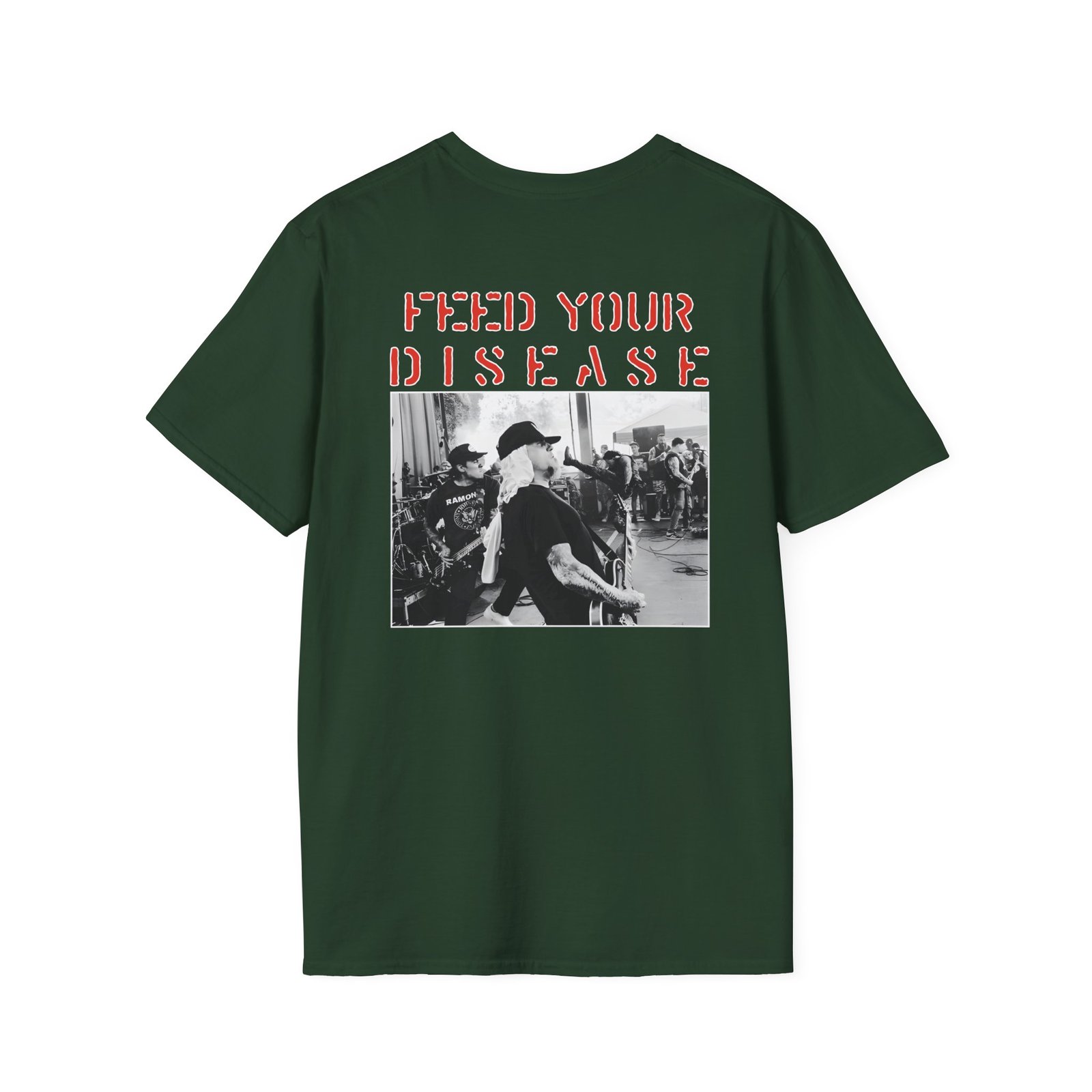 The Twitching Tongues Feed Your Disease unisex soft-style t-shirt puts a new spin on casual comfort. Made from very soft materials, this tee is 100% cotton for solid colors. Heather colors and sports grey include polyester. The shoulders have twill tape for improved durability. There are no side seams. The collar is made with ribbed knitting to prevent curling damage.