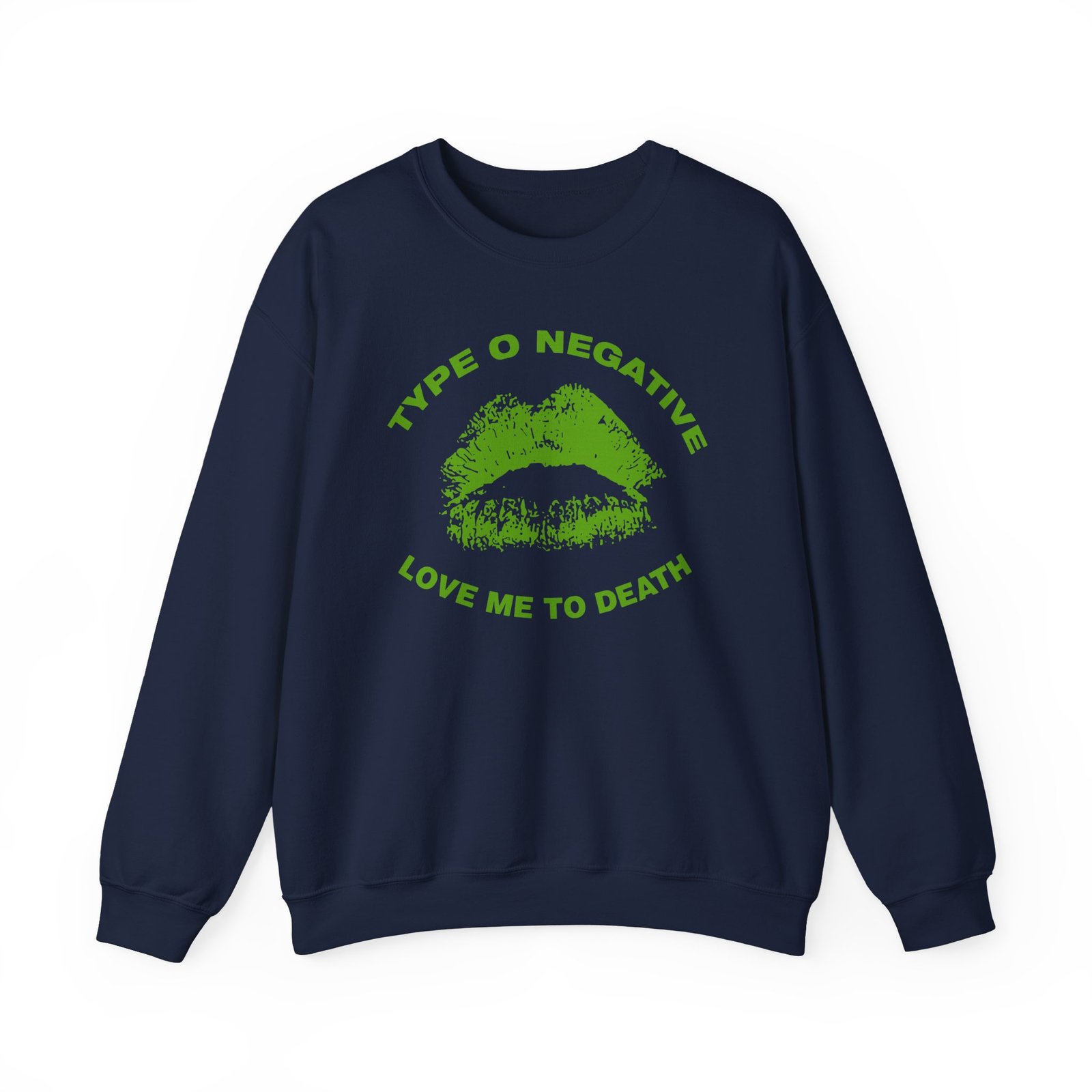 Ideal for any situation, a Type O Negative Love Me to Death unisex heavy blend crewneck sweatshirt is pure comfort. These garments are made from polyester and cotton. This combination helps designs come out looking fresh and beautiful. The collar is ribbed knit, so it retains its shape even after washing. There are no itchy side seams on these sweaters.