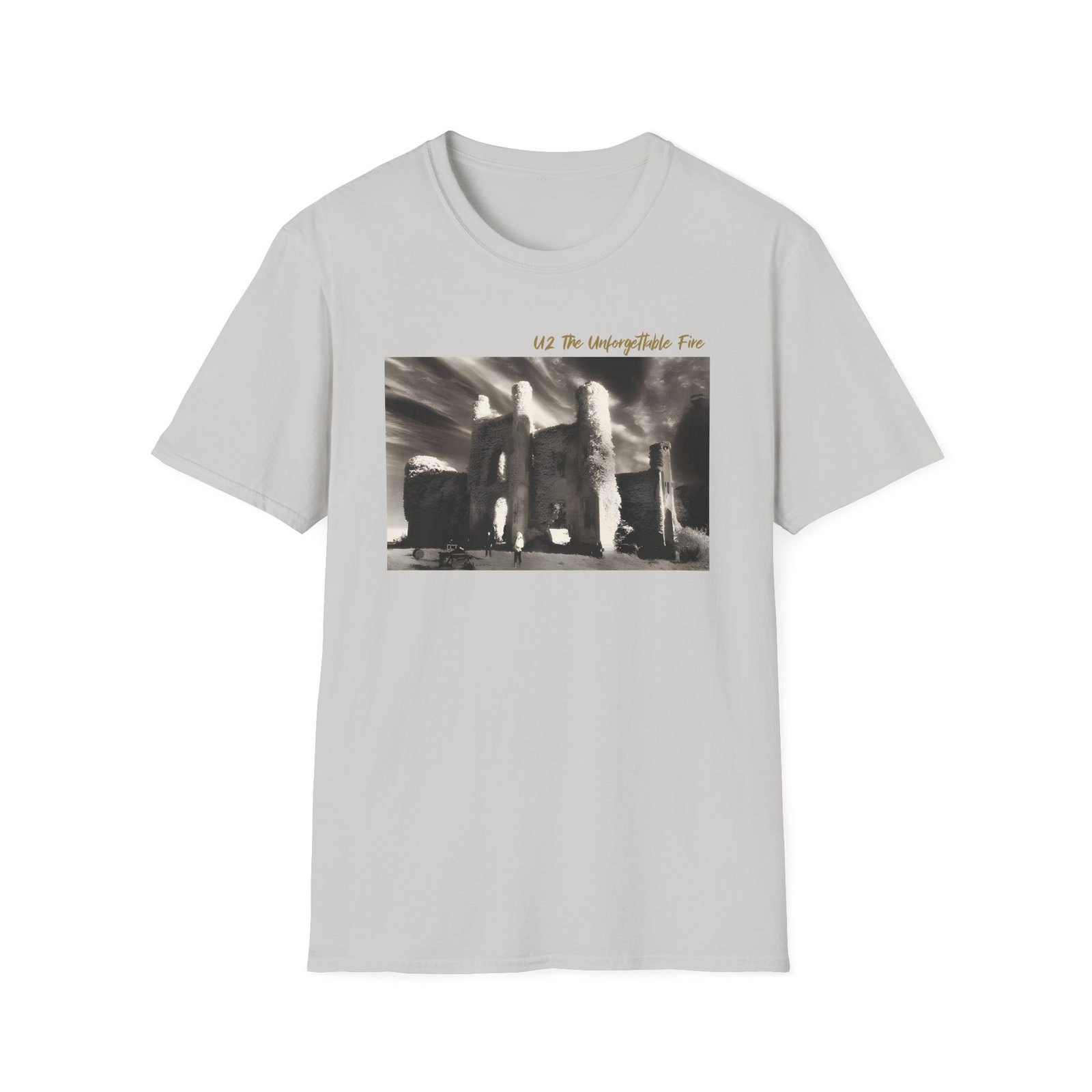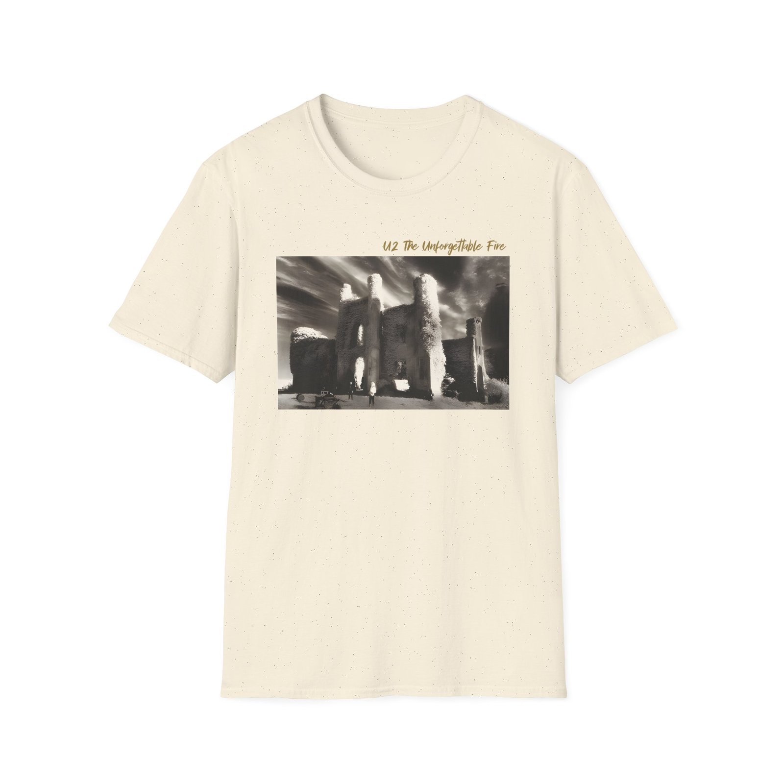 The U2 the Unforgettable Fire Album unisex soft-style t-shirt puts a new spin on casual comfort. Made from very soft materials, this tee is 100% cotton for solid colors. Heather colors and sports grey include polyester. The shoulders have twill tape for improved durability. There are no side seams. The collar is made with ribbed knitting to prevent curling damage.