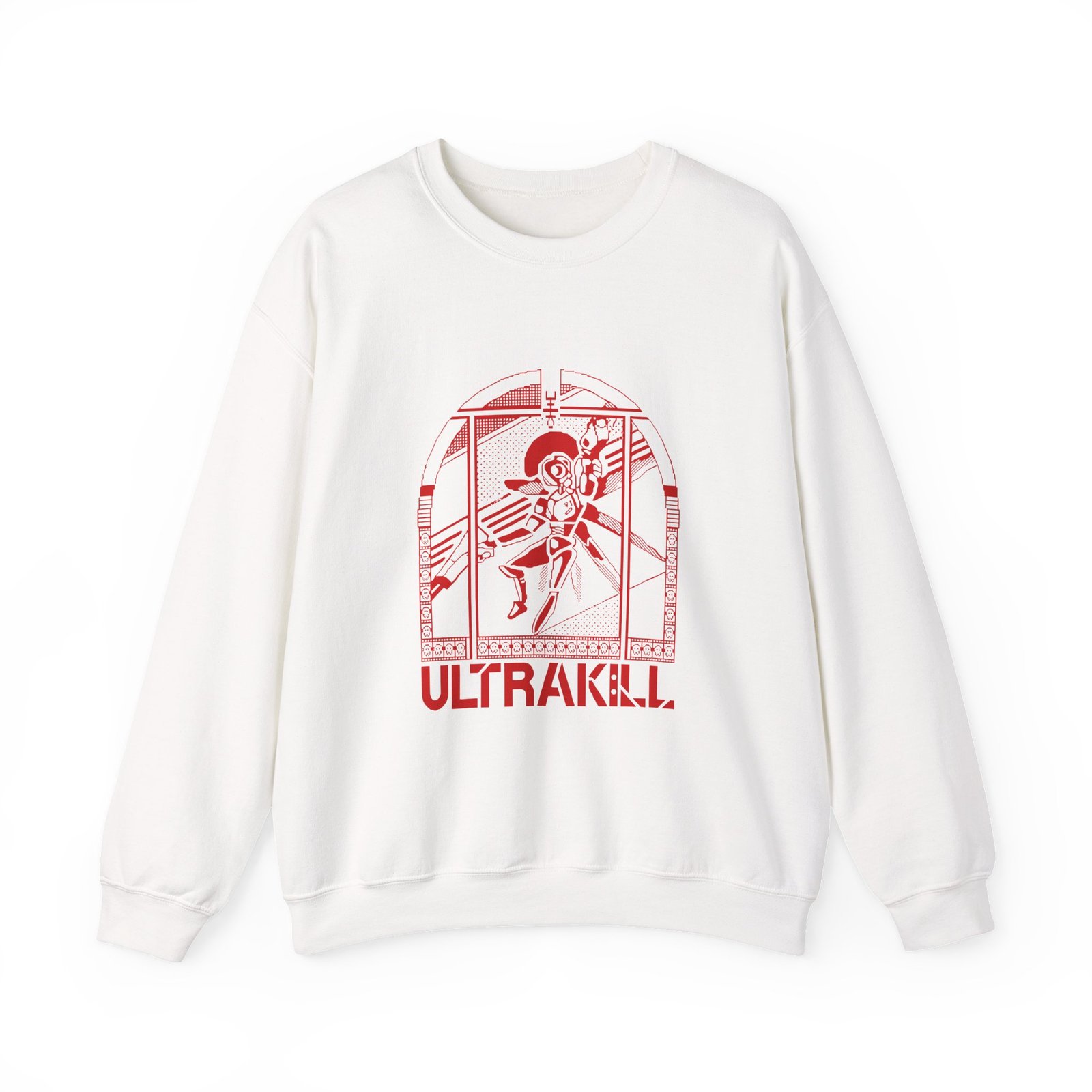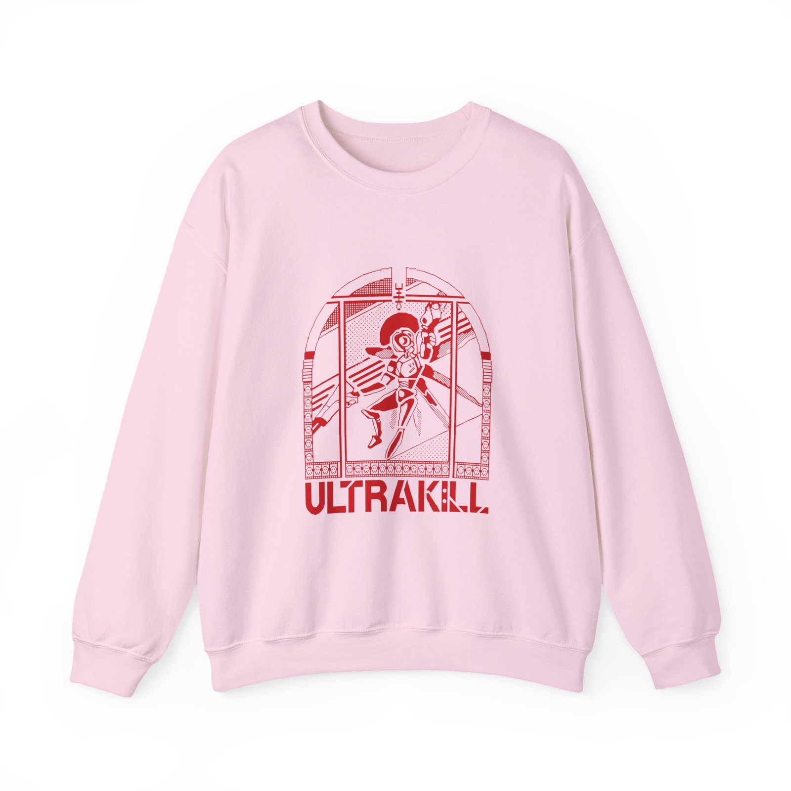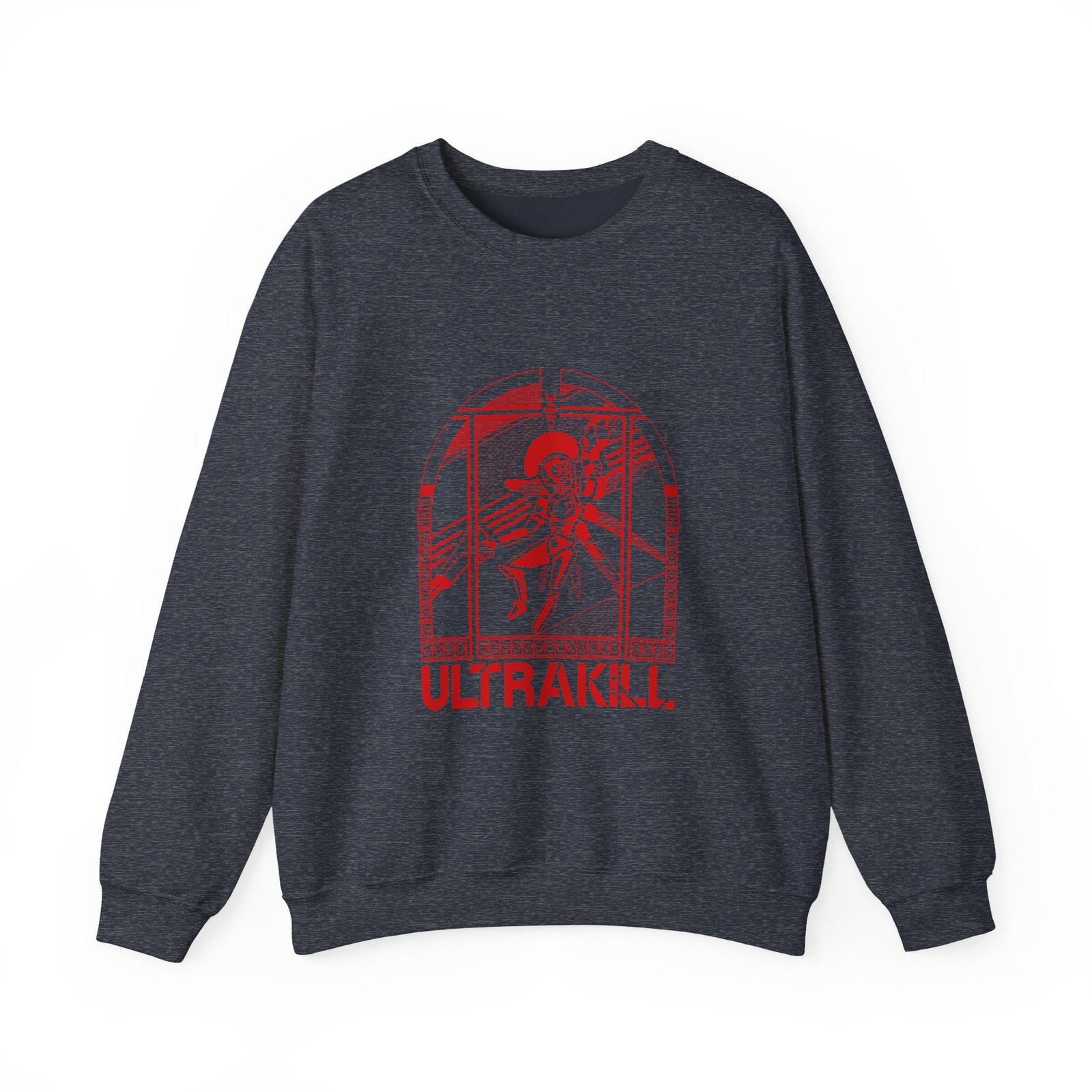 Ideal for any situation, a Ultrakill Ultrachurch unisex heavy blend crewneck sweatshirt is pure comfort. These garments are made from polyester and cotton. This combination helps designs come out looking fresh and beautiful. The collar is ribbed knit, so it retains its shape even after washing. There are no itchy side seams on these sweaters.