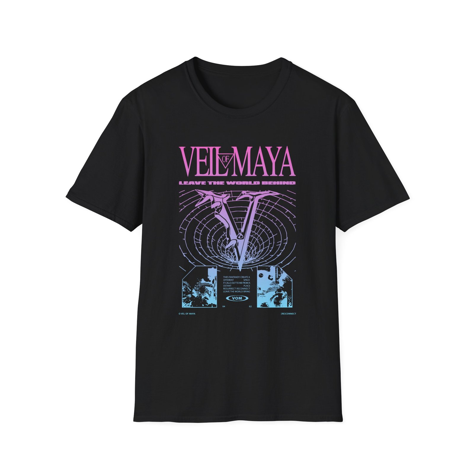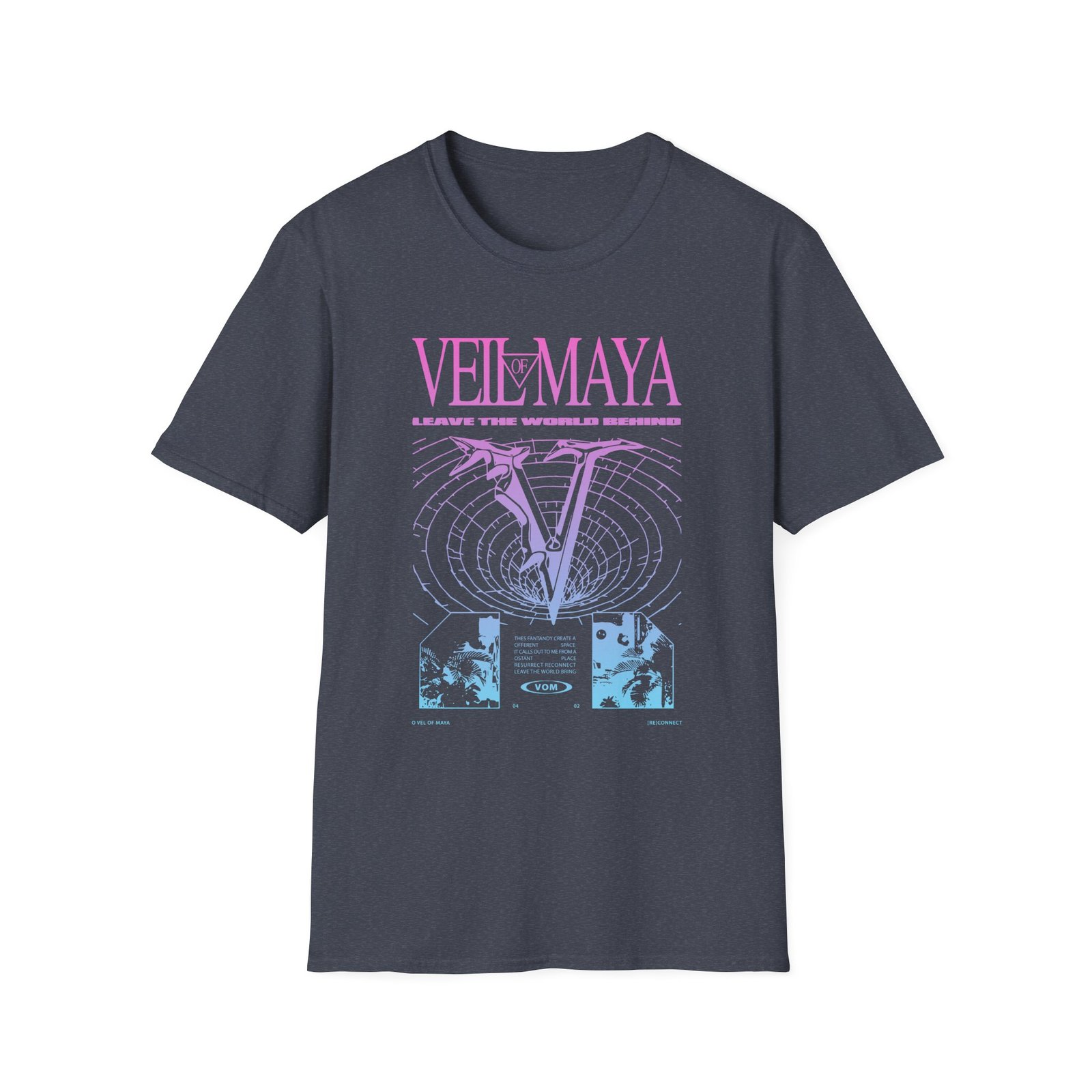 The Veil of Maya Wormhole unisex soft-style t-shirt puts a new spin on casual comfort. Made from very soft materials, this tee is 100% cotton for solid colors. Heather colors and sports grey include polyester. The shoulders have twill tape for improved durability. There are no side seams. The collar is made with ribbed knitting to prevent curling damage.