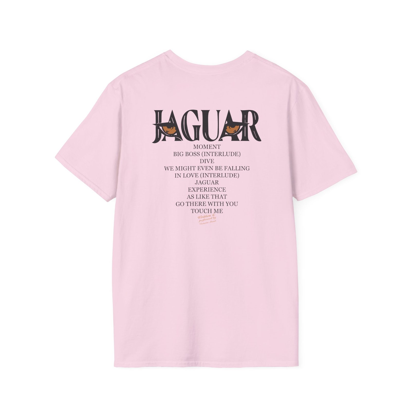 The Victoria Monet Jaguar unisex soft-style t-shirt puts a new spin on casual comfort. Made from very soft materials, this tee is 100% cotton for solid colors. Heather colors and sports grey include polyester. The shoulders have twill tape for improved durability. There are no side seams. The collar is made with ribbed knitting to prevent curling damage.