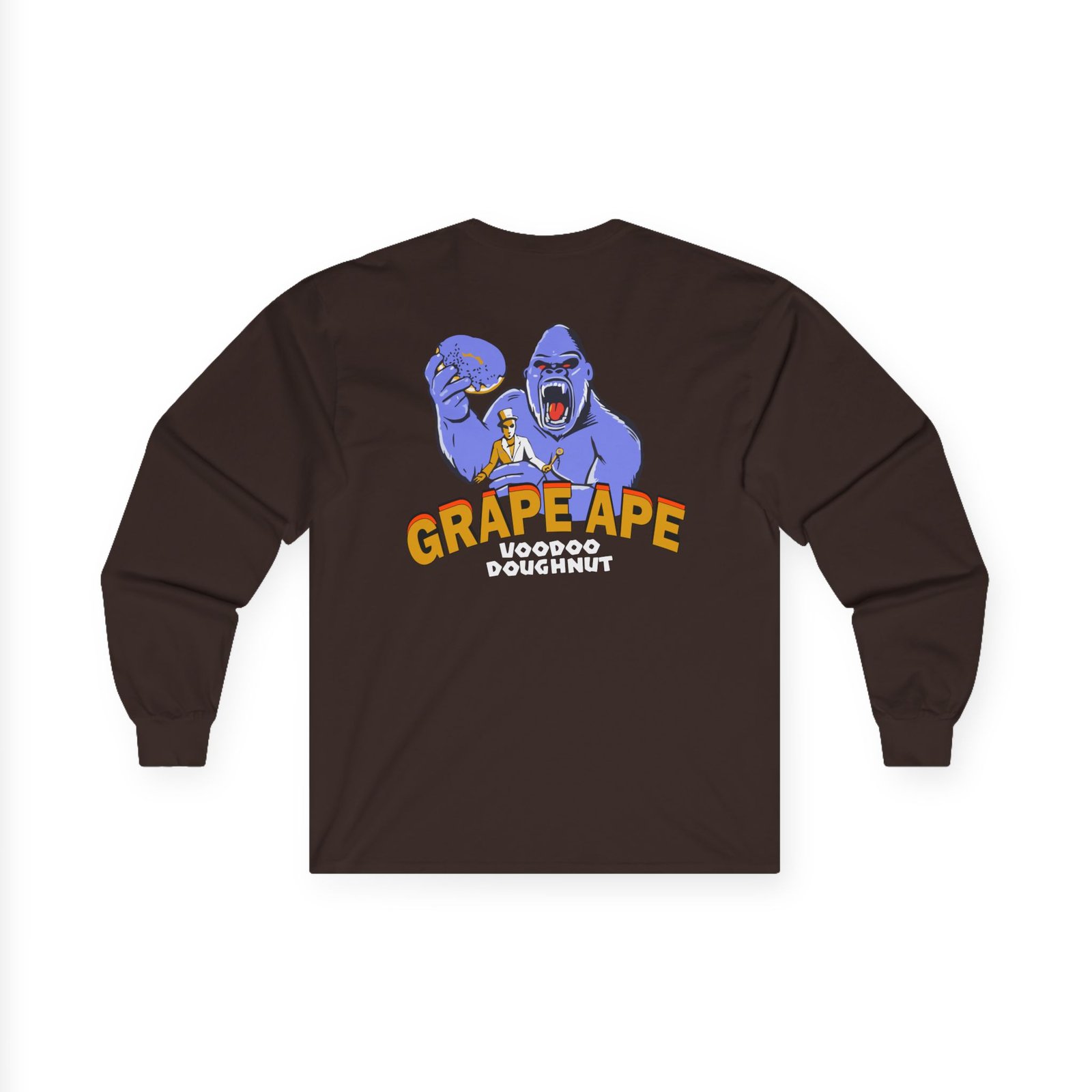 A bit more formal than a standard-issue t-shirt, the Voodoo Grape Ape ultra cotton long sleeve tee is a clear comfort winner. The sleeves also act as a nice frame. There are no side seams. The shoulders are taped for improved durability. This makes for a good fitting around the shoulders and neck. The cotton used for these shirts is environmentally friendly.