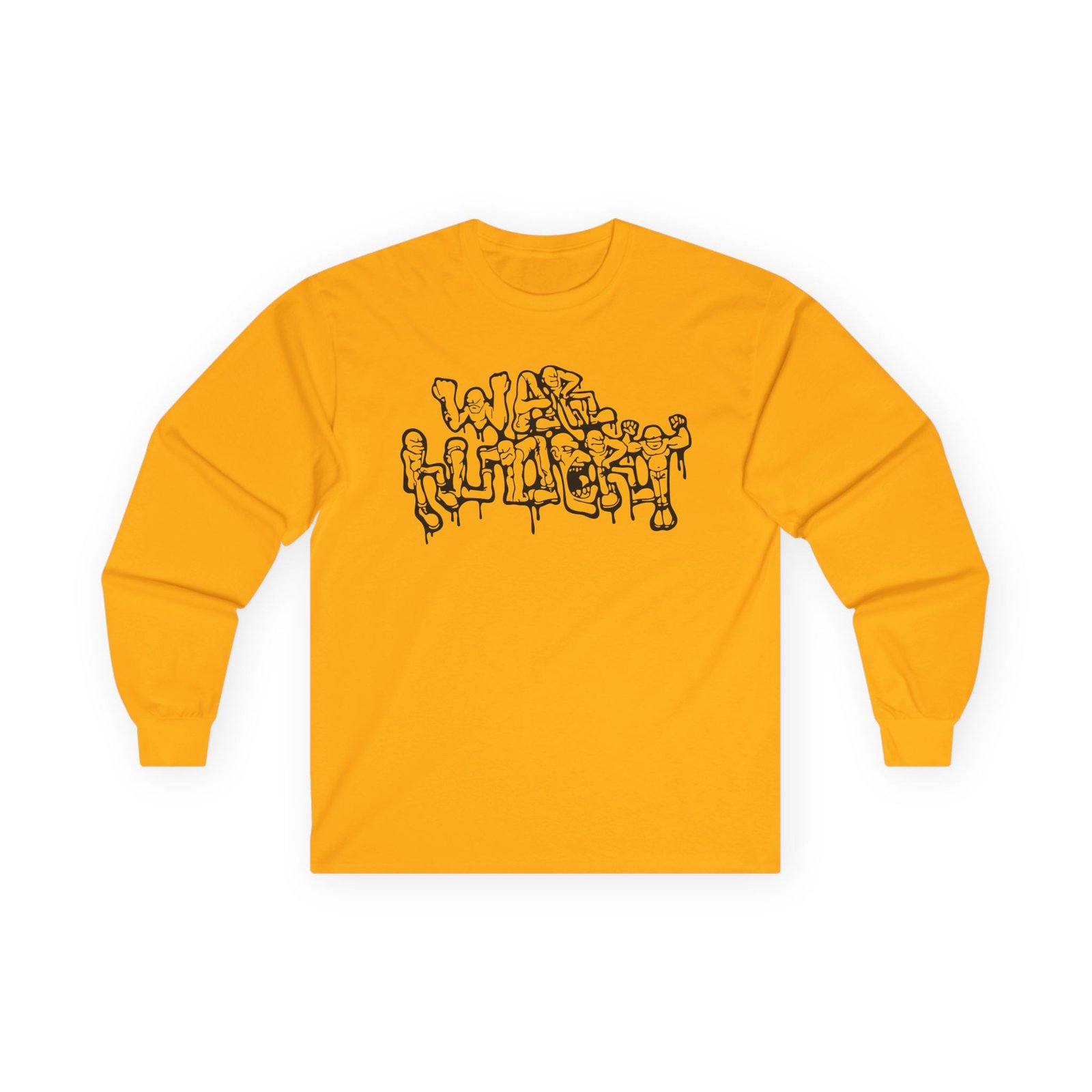 A bit more formal than a standard-issue t-shirt, the War Hungry Skinhead ultra cotton long sleeve tee is a clear comfort winner. The sleeves also act as a nice frame. There are no side seams. The shoulders are taped for improved durability. This makes for a good fitting around the shoulders and neck. The cotton used for these shirts is environmentally friendly.