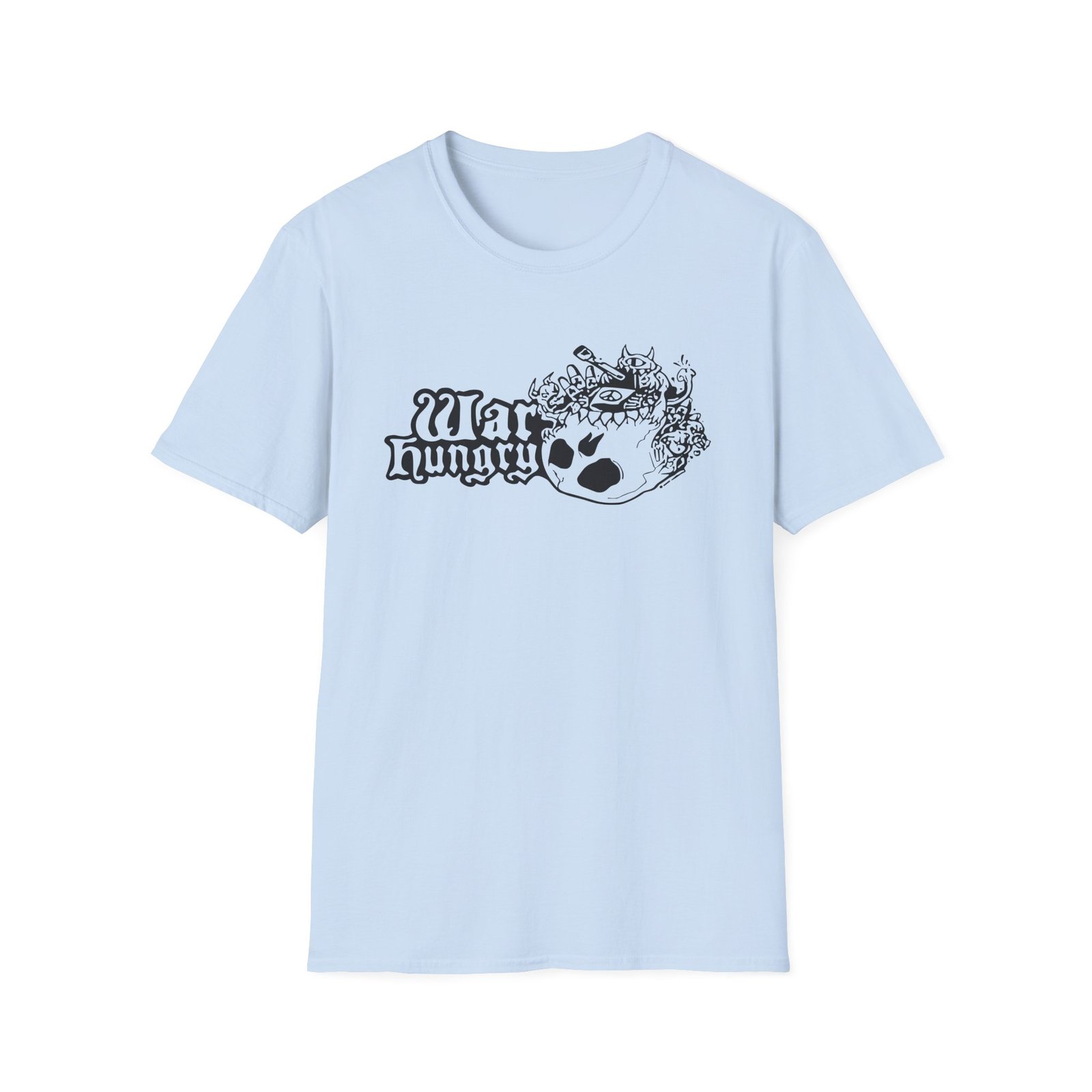 The War Hungry unisex soft-style t-shirt puts a new spin on casual comfort. Made from very soft materials, this tee is 100% cotton for solid colors. Heather colors and sports grey include polyester. The shoulders have twill tape for improved durability. There are no side seams. The collar is made with ribbed knitting to prevent curling damage.