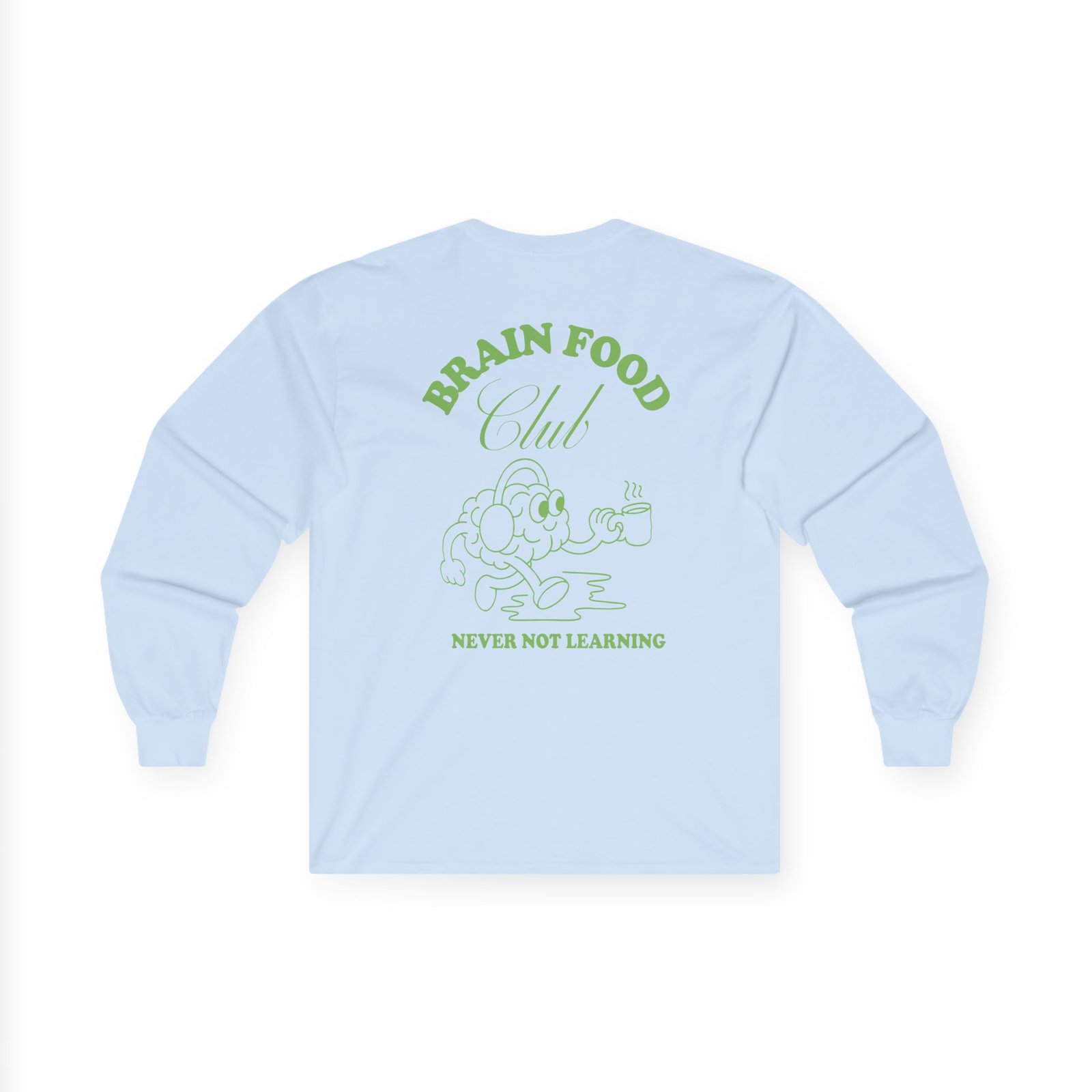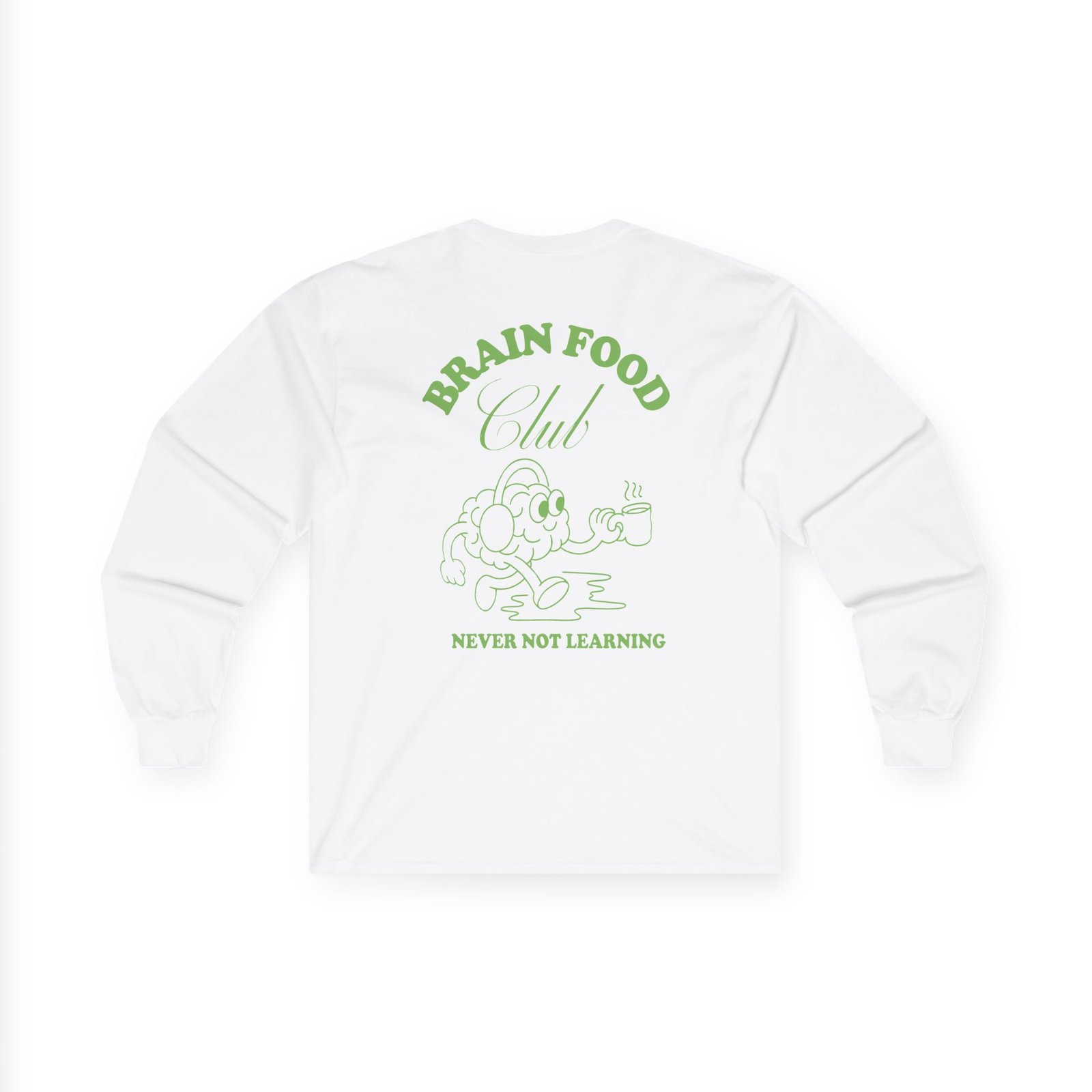 A bit more formal than a standard-issue t-shirt, the Wissen Weekly BRAIN FOOD CLUB ultra cotton long sleeve tee is a clear comfort winner. The sleeves also act as a nice frame. There are no side seams. The shoulders are taped for improved durability. This makes for a good fitting around the shoulders and neck. The cotton used for these shirts is environmentally friendly.