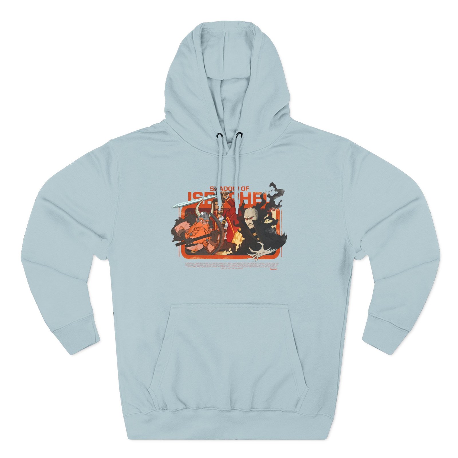 Beat the cold with this Yogscast Shadow Of Israphel premium pullover hoodie that’s just the right layer of warm and cozy. Made with three-panel fleece lining, this pullover is double stitched for durability and roomy. Pick one in your favorite color to match your style.