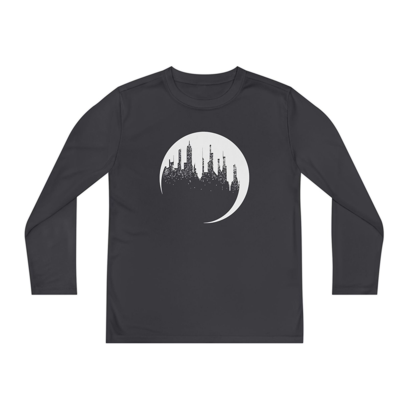 A lightweight Dropout Unsleeping City Glow-In-The-Dark long-sleeve designed for active kids who lean into darker, atmospheric style. The shirt’s smooth, moisture-wicking polyester keeps movement unhindered and dries fast after practice or a day outside. The front art drops into a stormy, grayscale scene crowned by a jagged flash of lightning and moody gothic lettering — a bold, quietly rebellious statement that pairs with skate nights, band practice, or just hanging with friends. The athletic cut skims the body for an energetic silhouette, while the tear-away label keeps comfort high. Warmth is balanced with breathability, so it layers easily under a jacket or wears solo on cooler evenings.