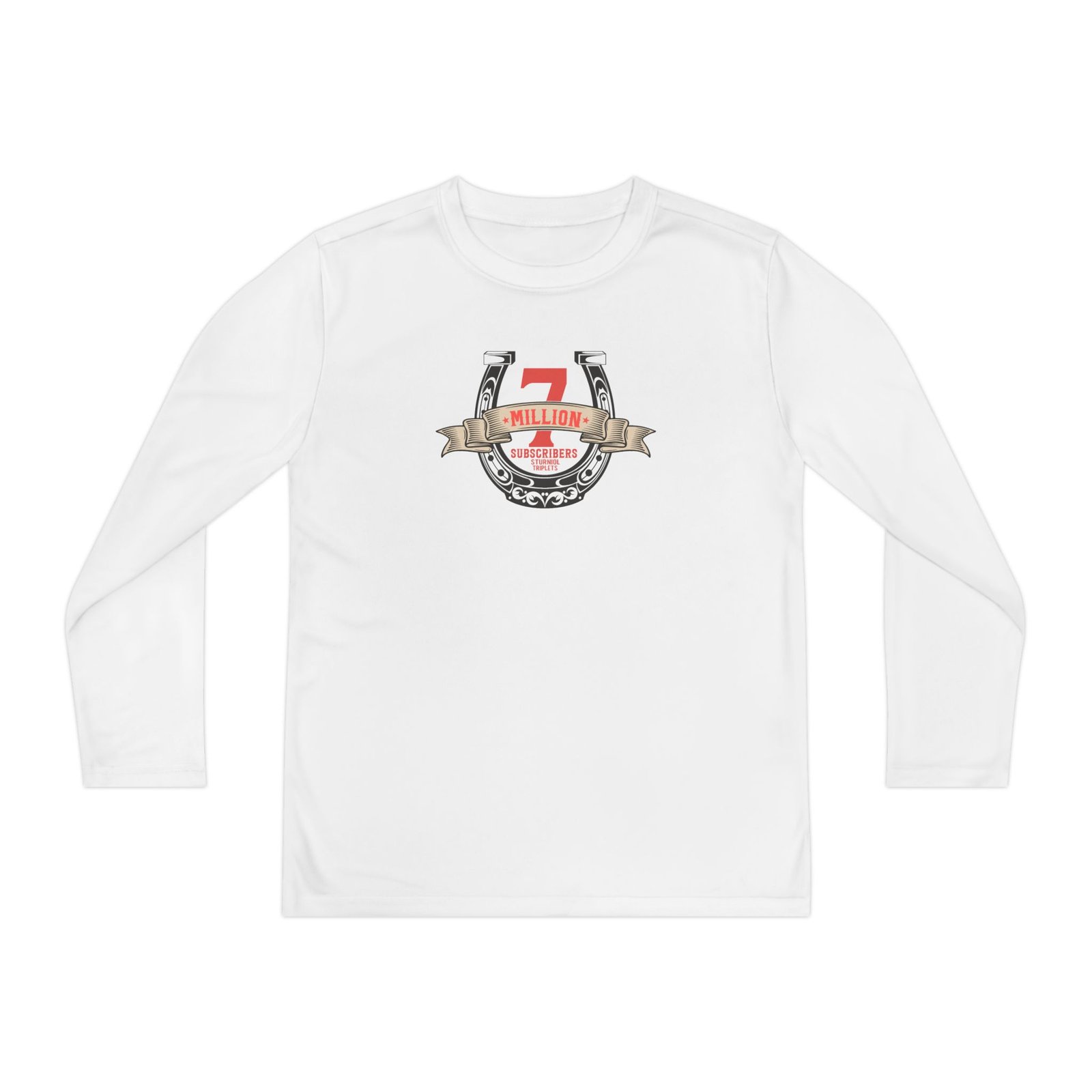 A lightweight Let's Trip 7M Subscribers Sturniolo Triplets long-sleeve designed for active kids who lean into darker, atmospheric style. The shirt’s smooth, moisture-wicking polyester keeps movement unhindered and dries fast after practice or a day outside. The front art drops into a stormy, grayscale scene crowned by a jagged flash of lightning and moody gothic lettering — a bold, quietly rebellious statement that pairs with skate nights, band practice, or just hanging with friends. The athletic cut skims the body for an energetic silhouette, while the tear-away label keeps comfort high. Warmth is balanced with breathability, so it layers easily under a jacket or wears solo on cooler evenings.