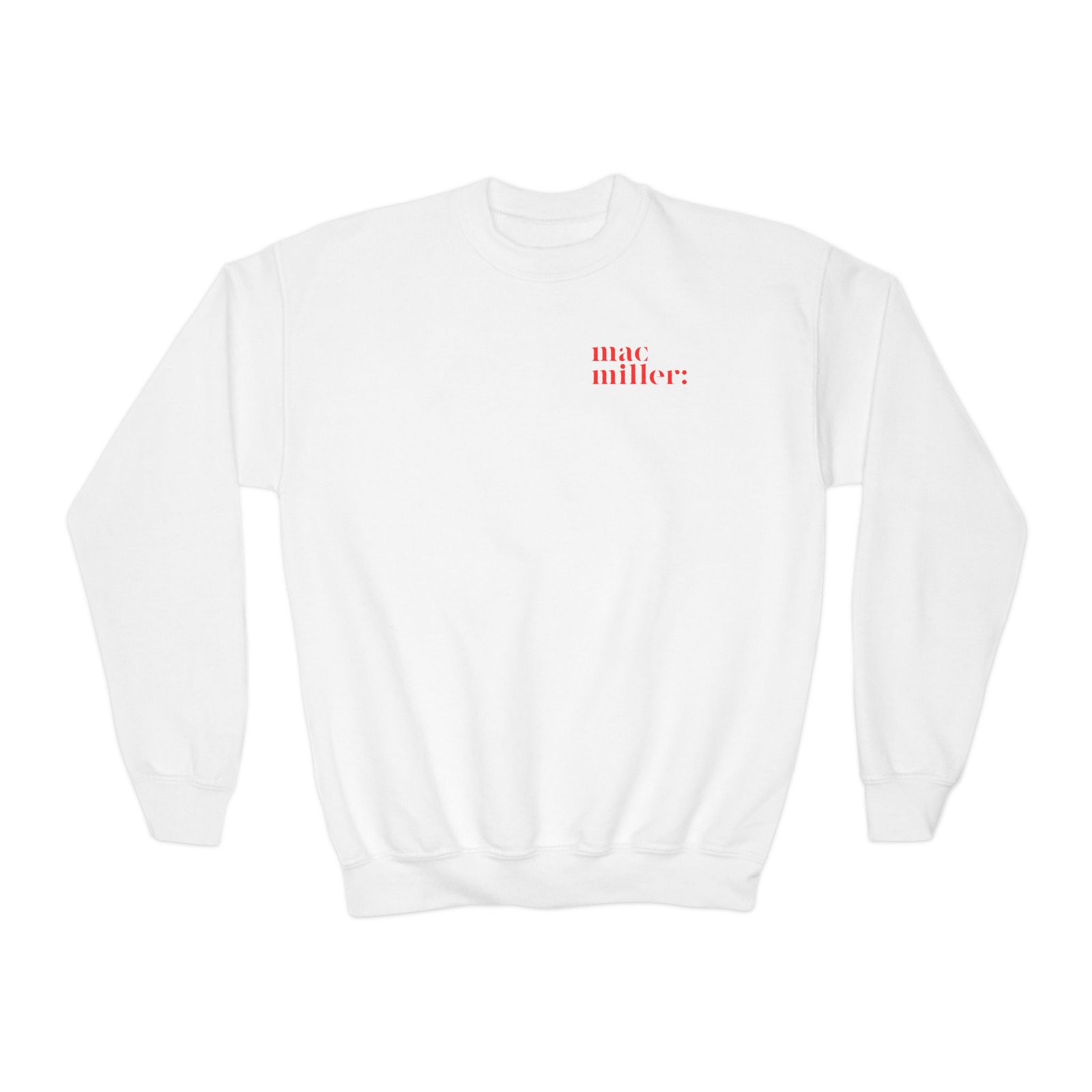 This loose-fit youth Mac Miller Illty crewneck brings moody, occult-inspired style to everyday wear. A storm-lit silhouette and grainy, moonlit scene sit beneath hand-lettered gothic text in bruised purple — a look that reads like a midnight zine spread. The sweatshirt’s medium-heavy knit feels substantial without weighing down small frames, and the ribbed collar and cuffs hold their shape through play and repeat washes. Let this crew be the quiet centerpiece of a darker wardrobe: layered over band tees, hoodies, or under a denim jacket for a city-night vibe that leans mysterious and made-for-exploring.