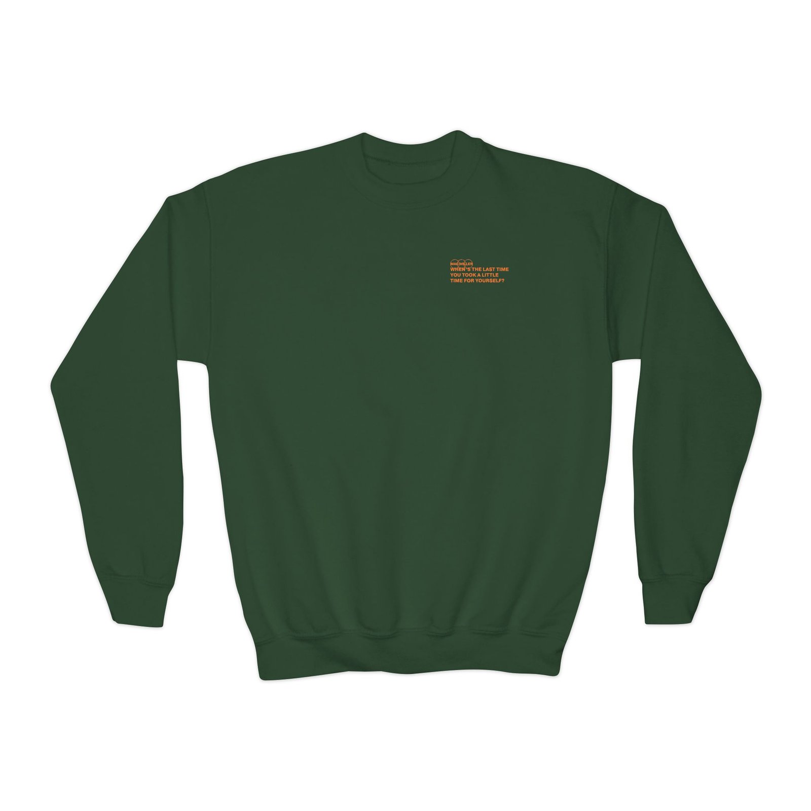 This loose-fit youth Mac Miller Take a Little Time crewneck brings moody, occult-inspired style to everyday wear. A storm-lit silhouette and grainy, moonlit scene sit beneath hand-lettered gothic text in bruised purple — a look that reads like a midnight zine spread. The sweatshirt’s medium-heavy knit feels substantial without weighing down small frames, and the ribbed collar and cuffs hold their shape through play and repeat washes. Let this crew be the quiet centerpiece of a darker wardrobe: layered over band tees, hoodies, or under a denim jacket for a city-night vibe that leans mysterious and made-for-exploring.