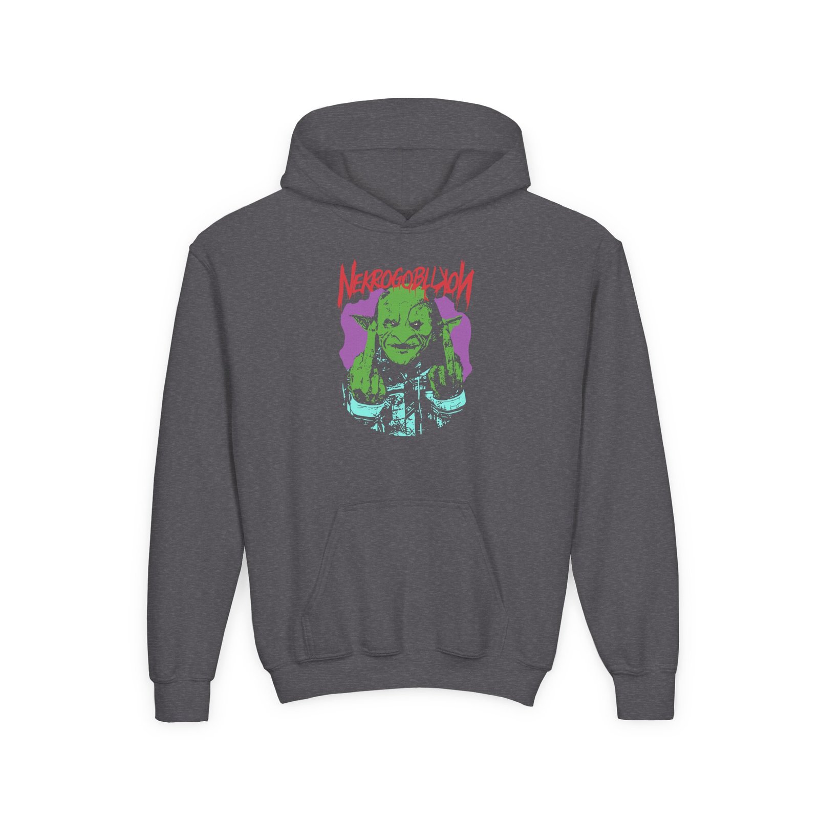 Soft, comfy, and a little bit mischievous — this youth Nekrogoblikon We Have a Goblin hoodie brings bright, playful energy to everyday wear. A drippy gradient smiley sits on the chest in neon orange-to-pink, framed by bold lettering that gives the design attitude without shouting. The midweight fabric holds its shape and keeps kids cozy through playground runs, chilly school mornings, and weekend hangouts. Thoughtful details like a roomy kangaroo pocket and twill neck tape make it durable and comfortable, while print and embroidery options let you add a custom touch. It’s the kind of hoodie that becomes a go-to for active days and casual adventures.