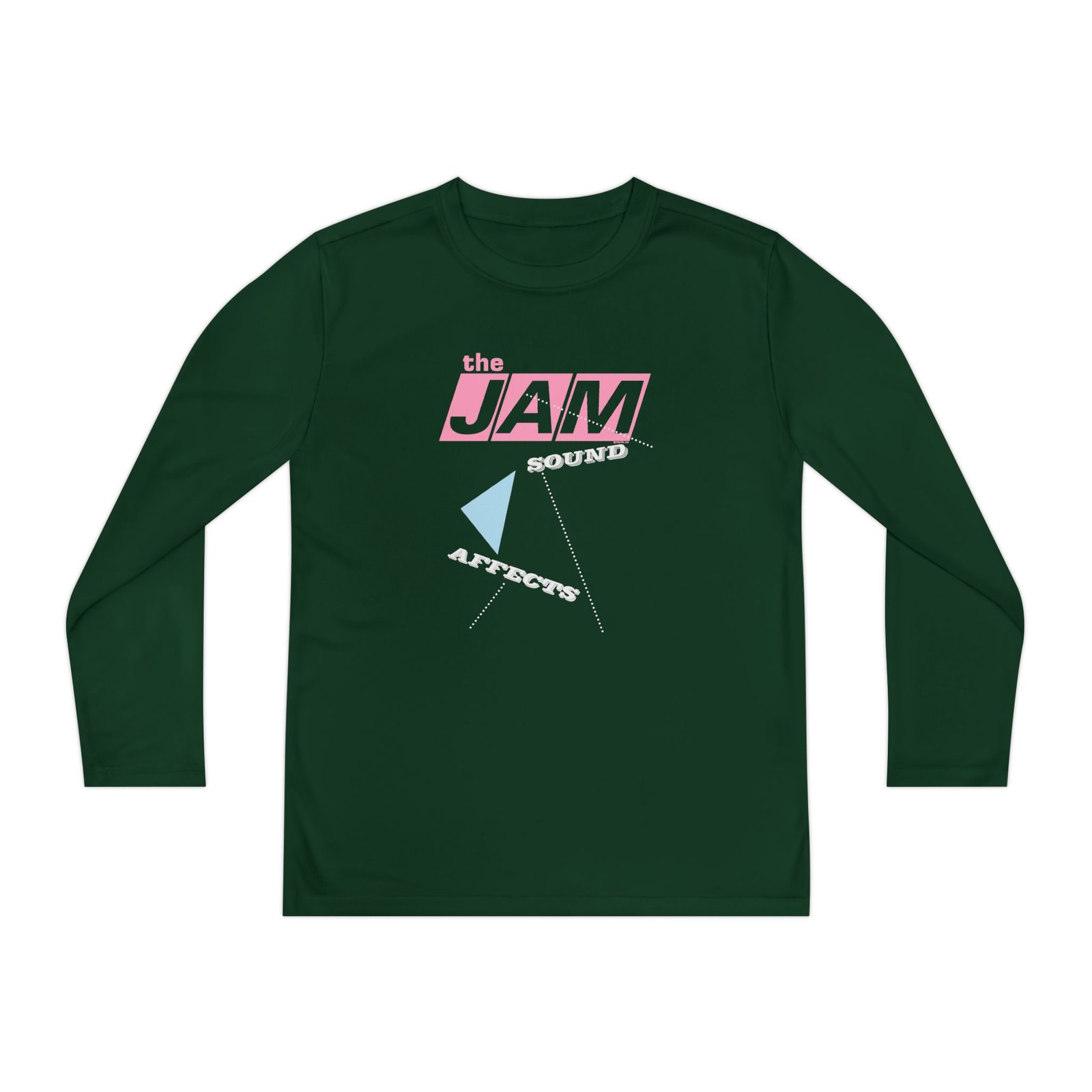 A lightweight PWL Sound Affects Logo long-sleeve designed for active kids who lean into darker, atmospheric style. The shirt’s smooth, moisture-wicking polyester keeps movement unhindered and dries fast after practice or a day outside. The front art drops into a stormy, grayscale scene crowned by a jagged flash of lightning and moody gothic lettering — a bold, quietly rebellious statement that pairs with skate nights, band practice, or just hanging with friends. The athletic cut skims the body for an energetic silhouette, while the tear-away label keeps comfort high. Warmth is balanced with breathability, so it layers easily under a jacket or wears solo on cooler evenings.