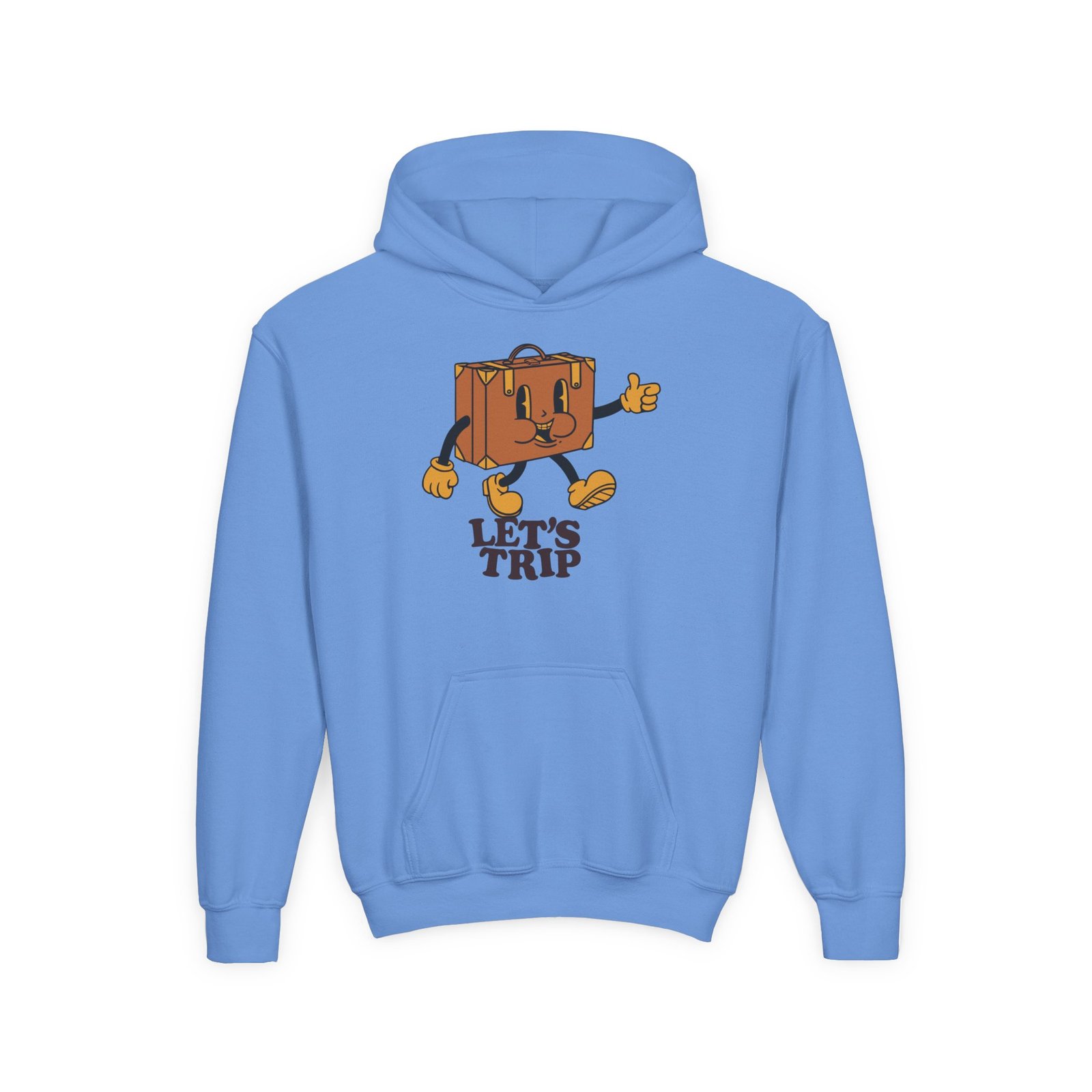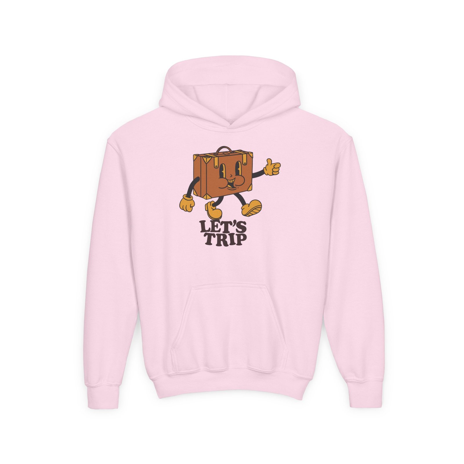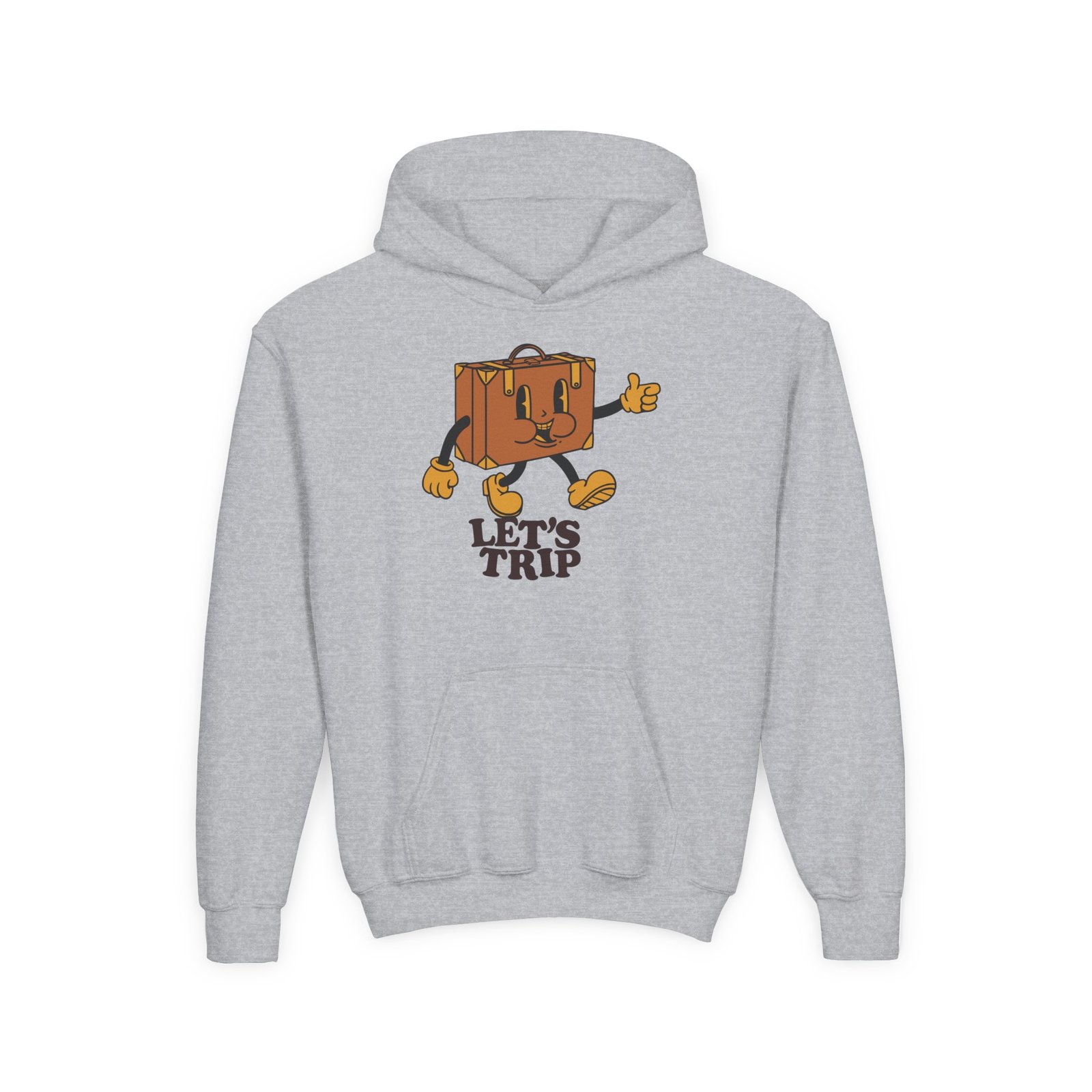 Soft, comfy, and a little bit mischievous — this youth Sturniolo Lets Trip hoodie brings bright, playful energy to everyday wear. A drippy gradient smiley sits on the chest in neon orange-to-pink, framed by bold lettering that gives the design attitude without shouting. The midweight fabric holds its shape and keeps kids cozy through playground runs, chilly school mornings, and weekend hangouts. Thoughtful details like a roomy kangaroo pocket and twill neck tape make it durable and comfortable, while print and embroidery options let you add a custom touch. It’s the kind of hoodie that becomes a go-to for active days and casual adventures.