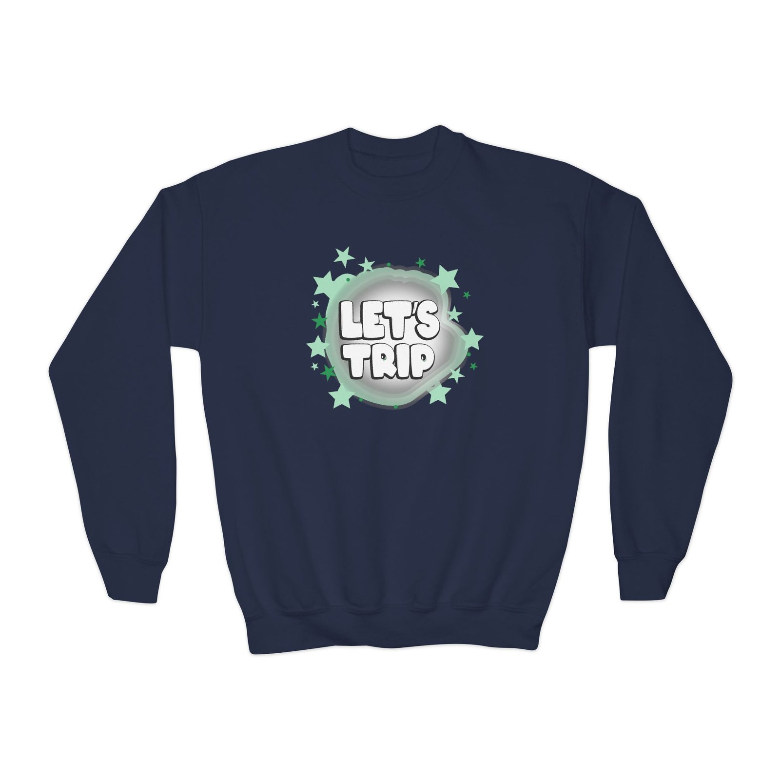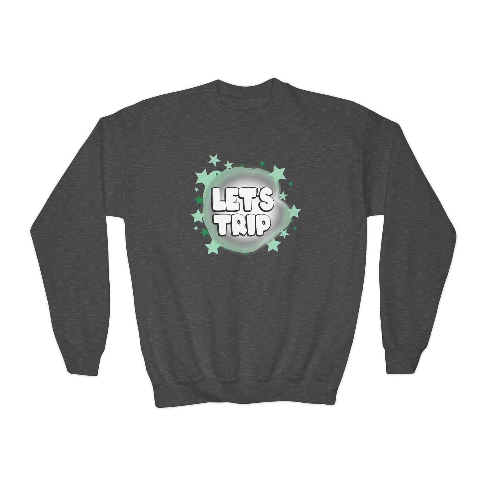 This loose-fit youth Sturniolo Let's Trip Lights crewneck brings moody, occult-inspired style to everyday wear. A storm-lit silhouette and grainy, moonlit scene sit beneath hand-lettered gothic text in bruised purple — a look that reads like a midnight zine spread. The sweatshirt’s medium-heavy knit feels substantial without weighing down small frames, and the ribbed collar and cuffs hold their shape through play and repeat washes. Let this crew be the quiet centerpiece of a darker wardrobe: layered over band tees, hoodies, or under a denim jacket for a city-night vibe that leans mysterious and made-for-exploring.