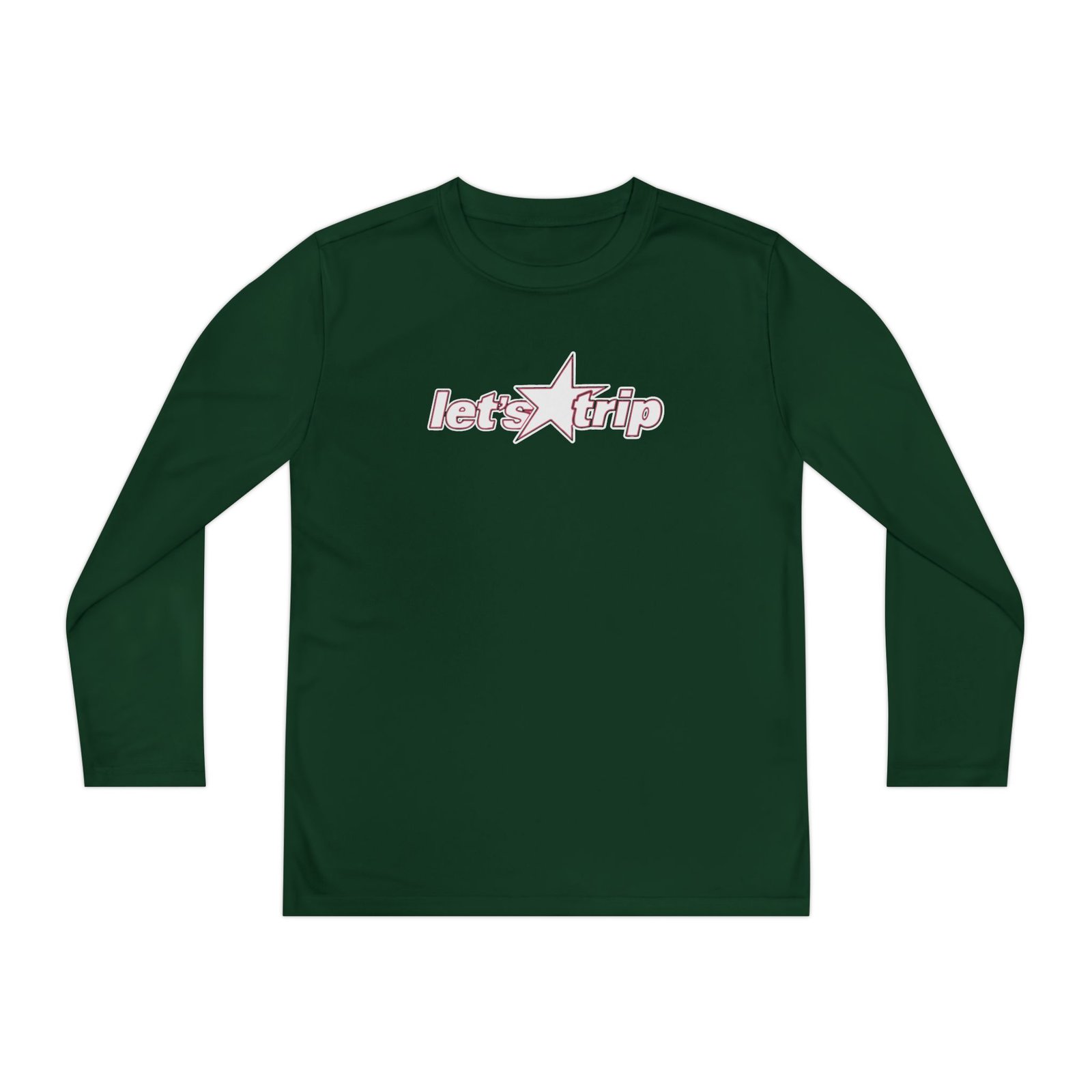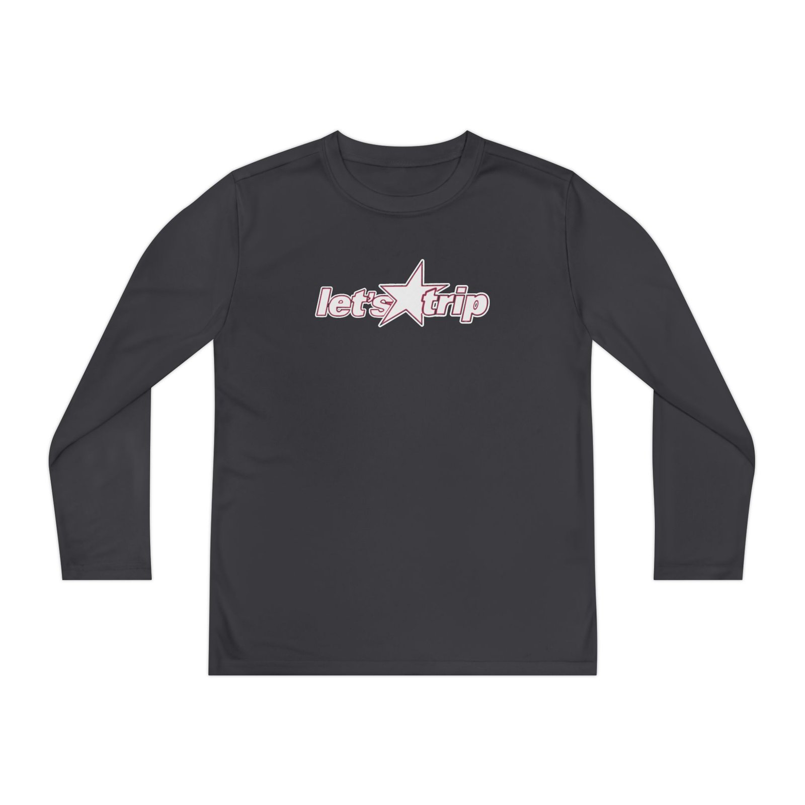 A lightweight Sturniolo Let's Trip Star long-sleeve designed for active kids who lean into darker, atmospheric style. The shirt’s smooth, moisture-wicking polyester keeps movement unhindered and dries fast after practice or a day outside. The front art drops into a stormy, grayscale scene crowned by a jagged flash of lightning and moody gothic lettering — a bold, quietly rebellious statement that pairs with skate nights, band practice, or just hanging with friends. The athletic cut skims the body for an energetic silhouette, while the tear-away label keeps comfort high. Warmth is balanced with breathability, so it layers easily under a jacket or wears solo on cooler evenings.