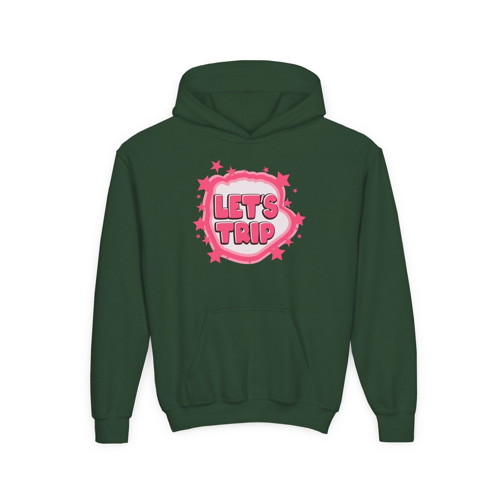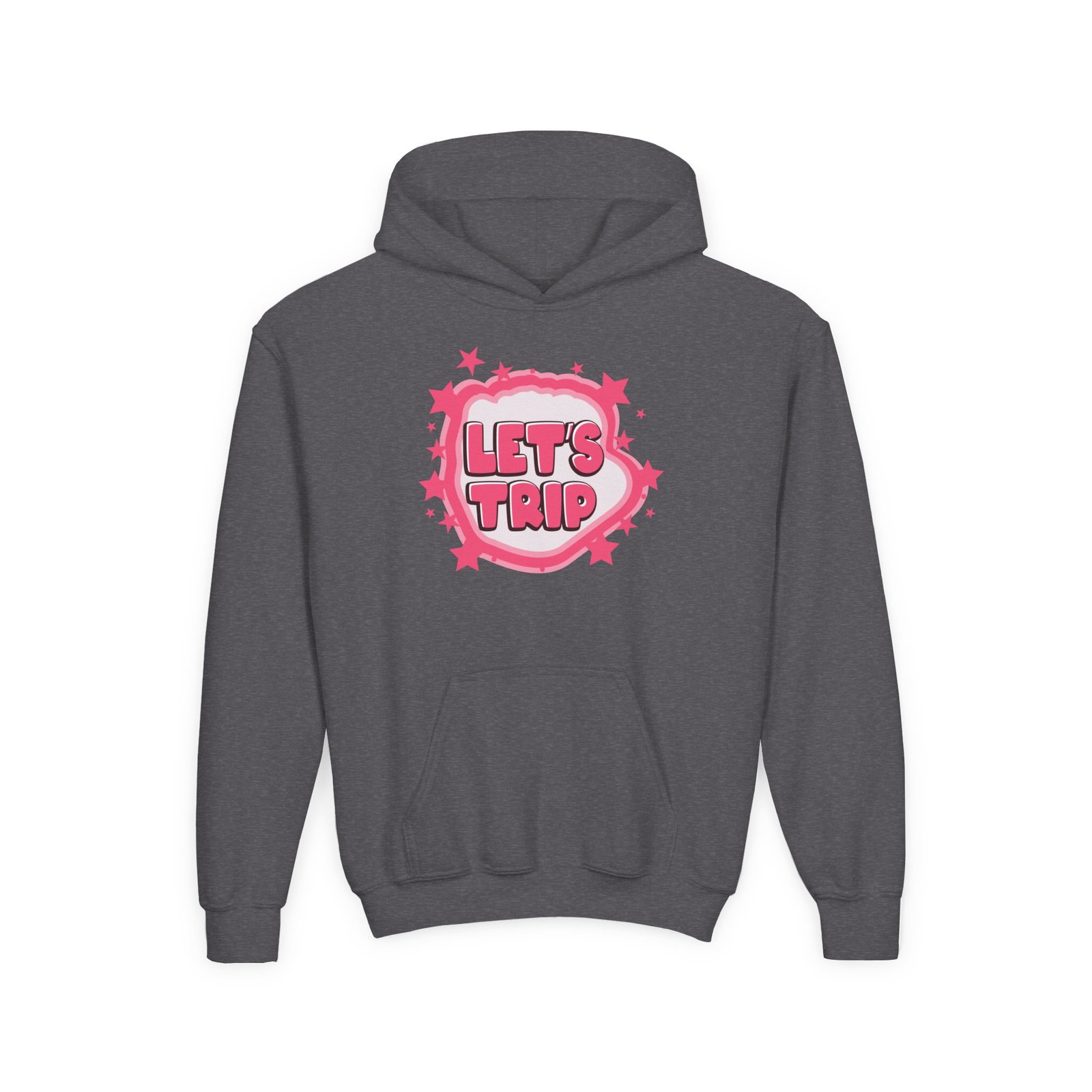 Soft, comfy, and a little bit mischievous — this youth Sturniolo Triplets Let's Trip Airbrush hoodie brings bright, playful energy to everyday wear. A drippy gradient smiley sits on the chest in neon orange-to-pink, framed by bold lettering that gives the design attitude without shouting. The midweight fabric holds its shape and keeps kids cozy through playground runs, chilly school mornings, and weekend hangouts. Thoughtful details like a roomy kangaroo pocket and twill neck tape make it durable and comfortable, while print and embroidery options let you add a custom touch. It’s the kind of hoodie that becomes a go-to for active days and casual adventures.