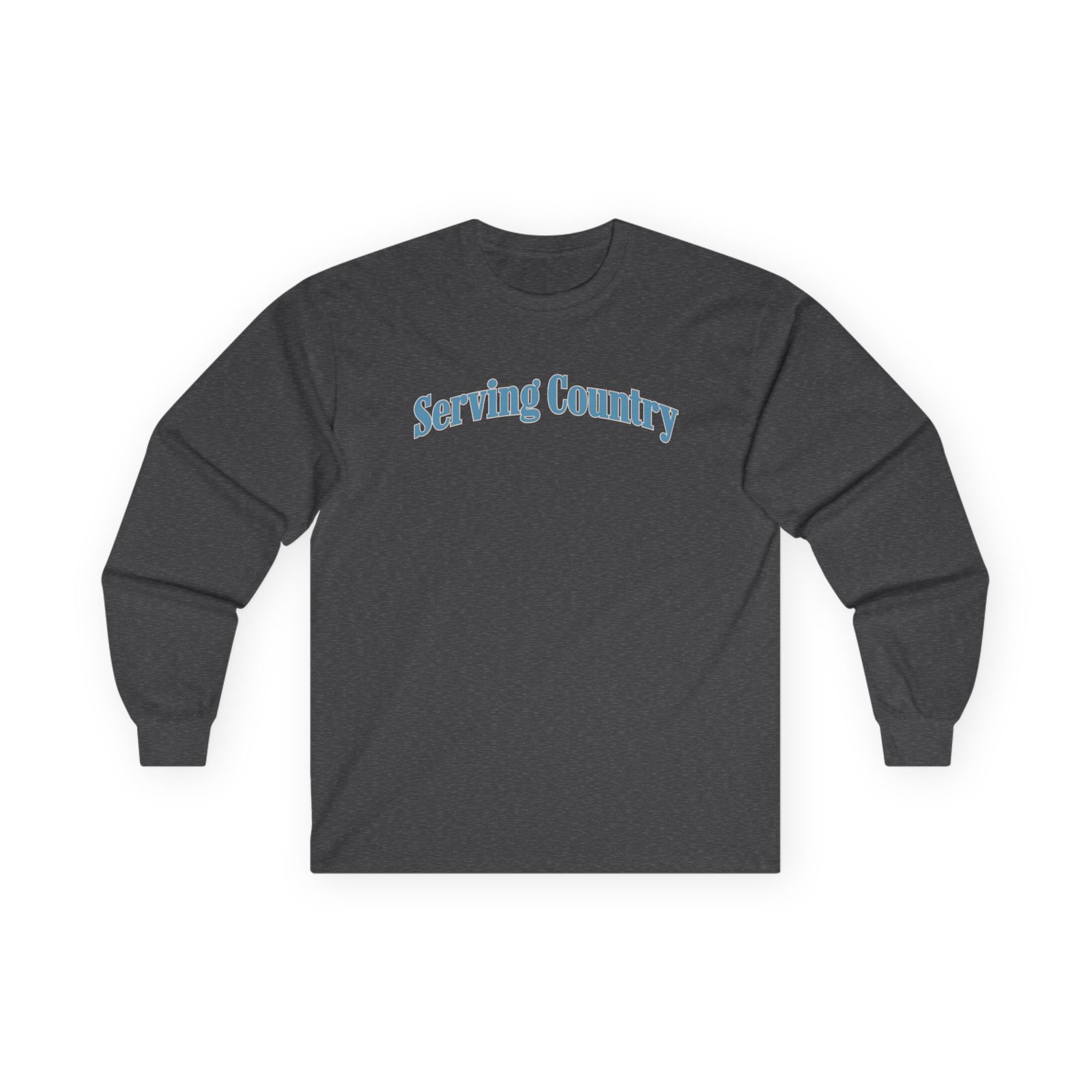 A bit more formal than a standard-issue t-shirt, the Yung Gravy Serving Country ultra cotton long sleeve tee is a clear comfort winner. The sleeves also act as a nice frame. There are no side seams. The shoulders are taped for improved durability. This makes for a good fitting around the shoulders and neck. The cotton used for these shirts is environmentally friendly.