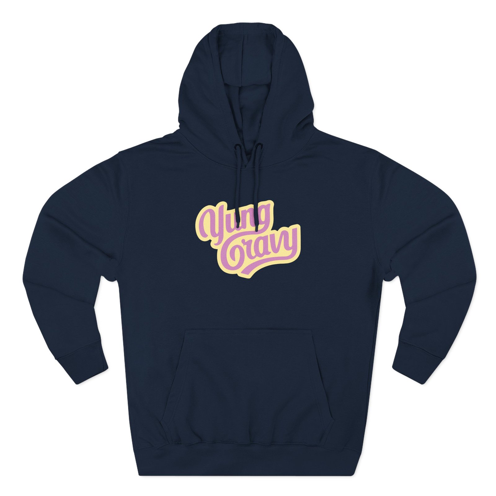 Beat the cold with this Yung Gravy premium pullover hoodie that’s just the right layer of warm and cozy. Made with three-panel fleece lining, this pullover is double stitched for durability and roomy. Pick one in your favorite color to match your style.